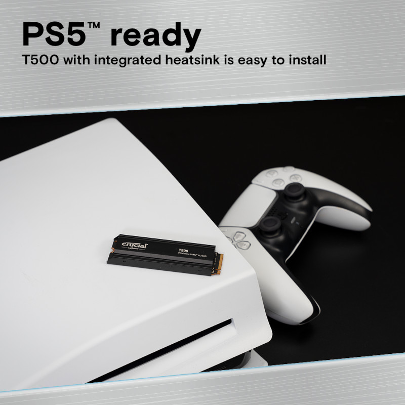 The Crucial T500 PCIe® Gen4 NVMe SSD will improve your gaming and content creation experience. The T500 is a game changer, designed for high-performance gaming, PS5 upgrades, and photo/video editing. With sequential read/write speeds of up to 7,400/7,000MB/s and random read/write speeds of up to 1.44M IOPs, you’ll be able to load games 16% faster and enjoy a 42% increase in content creation app performance.