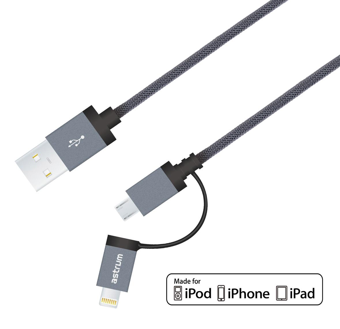 AC330 Micro USB + 8pin Charge & Sync MFI Braided Cable A53033-T
