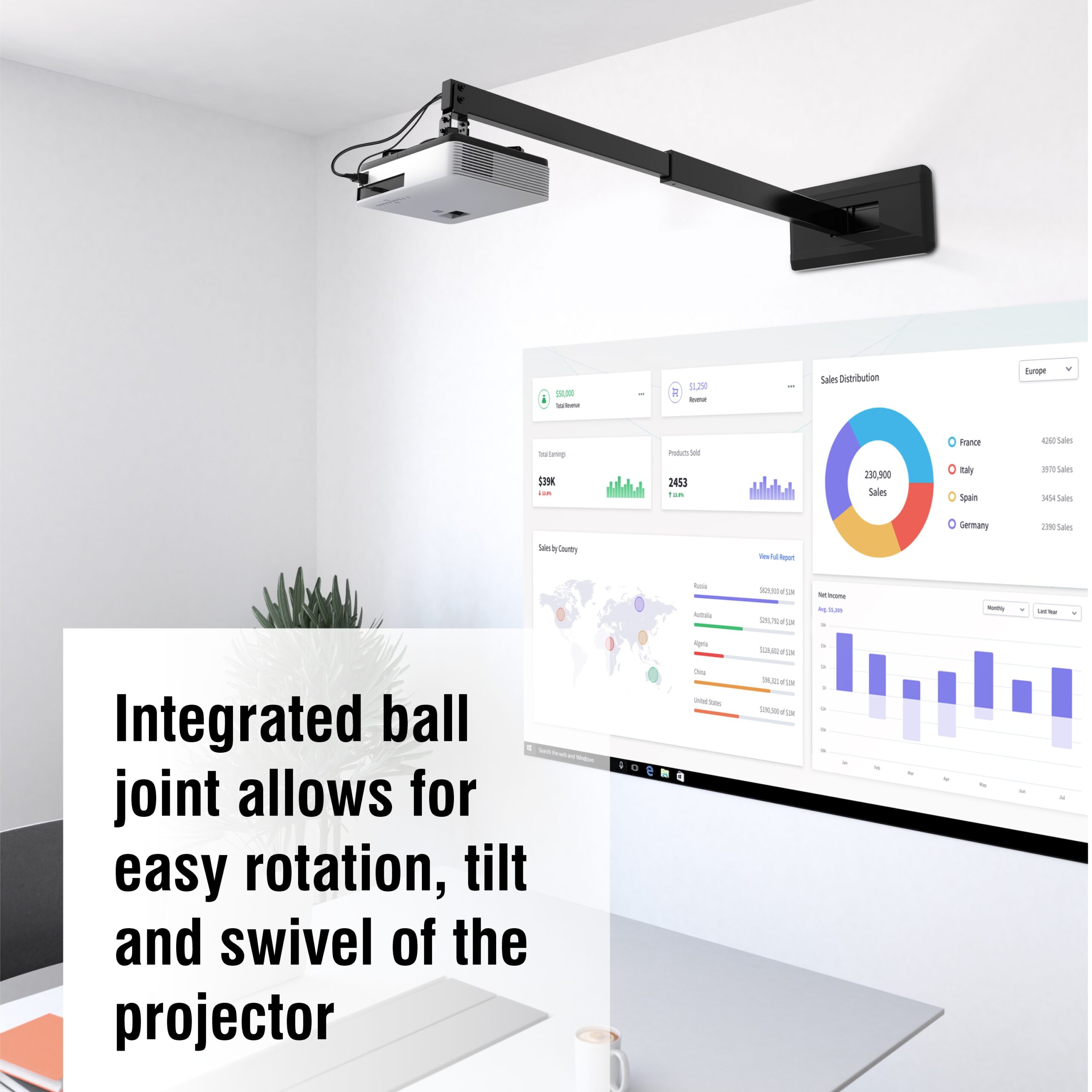 - Integrated ball joint allows for easy rotation, tilt and swivel of the projector