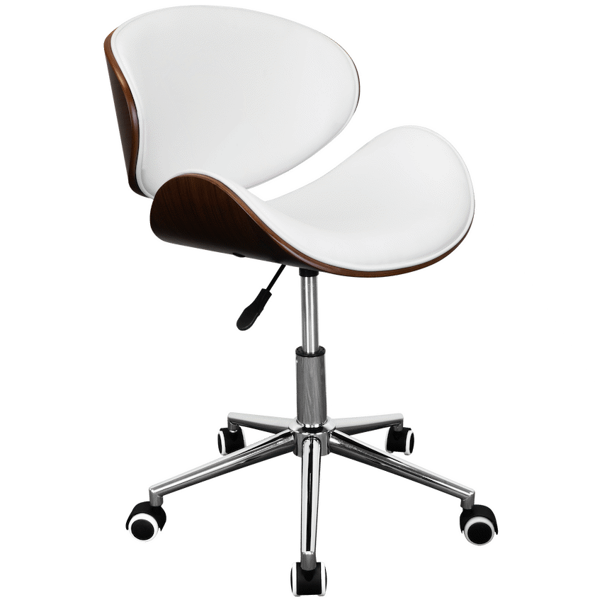 Everfurn Amos Mid Back Office Chair, White PU With Dark Wood, Chrome Base