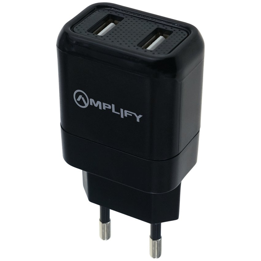 Amplify Dual USB Wall Charger with Micro Cable – Black