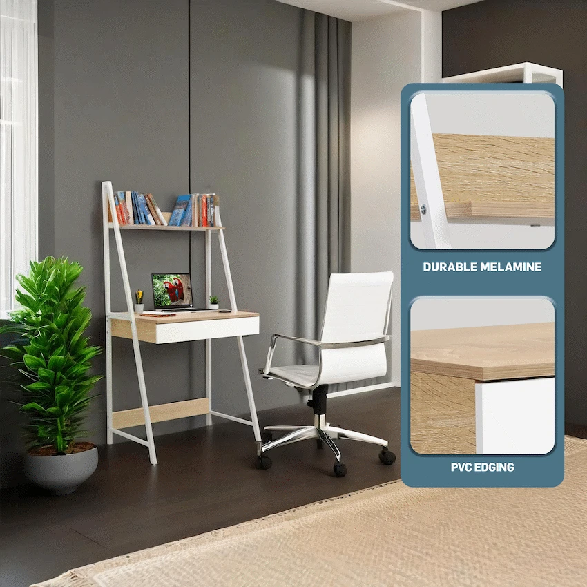 Belle Office Desk with Large Drawer and Storage Shelf