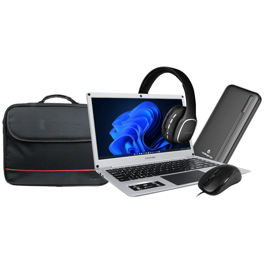 Connex 14 Celeron 4/128SSD All I Need BundleThis value-packed bundle includes the Connex L1430-PRO-SL128 laptop, comfortable Volkano headphones, a precise wireless mouse, a reliable powerbank, and a durable laptop bag. Perfect for work, study, or travel, it delivers performance, convenience, and essential accessories in one affordable, ready-to-go solution for everyday productivity and entertainment on the go anywhere.