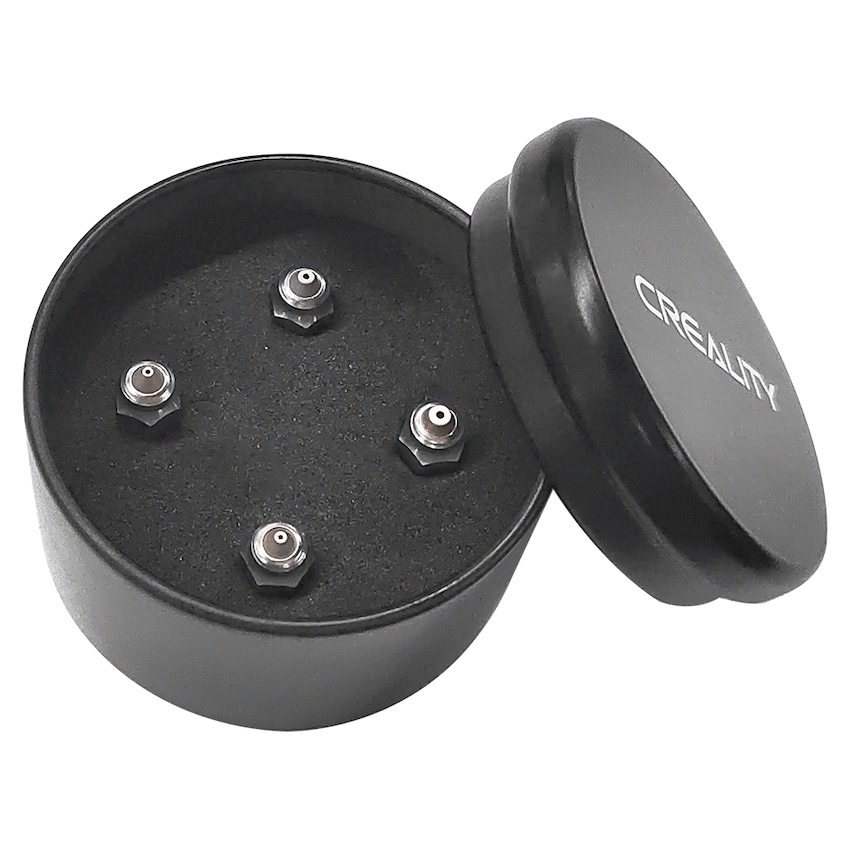 The Creality High Flow Nozzle Kit is a set of four different nozzle sizes designed for Creality 3D printers, including the K1 and K1 Max models. These nozzles are used to extrude filament onto the build platform during 3D printing. Here’s some information about the kit:Nozzle Sizes: The kit includes four different nozzle sizes:0.4mm nozzle0.6mm nozzle0.8mm nozzleK1 nozzle (which may have a specific design or feature for Creality’s K1 printer)High Flow: The “”High Flow”” designation suggests that these nozzles are designed for applications where faster filament extrusion and higher printing speeds are required.Theyallow for thicker layers and can speed up the 3D printing process compared to standard nozzles.Nozzle Swapping: Different nozzle sizes are used for various purposes in 3D printing. A smaller nozzle, like the 0.4mm, is often used for detailed prints, while larger nozzles,like the 0.6mm and 0.8mm, are used for quicker and less detailed prints.Installation: When replacing a nozzle, it’s important to follow the manufacturer’s instructions and use the appropriate tools to ensure a proper installation. Nozzle changes canaffect print quality and extrusion rates, so adjustments to printer settings may be necessary.Materials: The nozzle size can also impact the types of filament you can use effectively. Smaller nozzles are better for fine details and thinner layers, while larger nozzles aresuitable for thicker layers and faster prints. It’s essential to consider the filament type and intended use when choosing a nozzle size.Before purchasing this nozzle kit, double-check that it is compatible with your specific Creality 3D printer model and that the nozzle sizes meet your printing requirements. Additionally, always follow proper safety precautions when working with 3D printers and hot nozzle components.What’s in the box1 x User Manual1 x Creality High flow nozzle kit 4pc 0.4,0.6,0.8mm K1