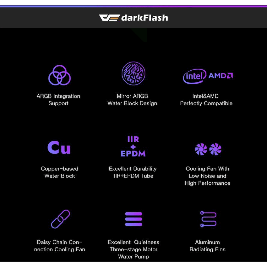 darkFlash DN240 Liquid CPU Cooler – Black