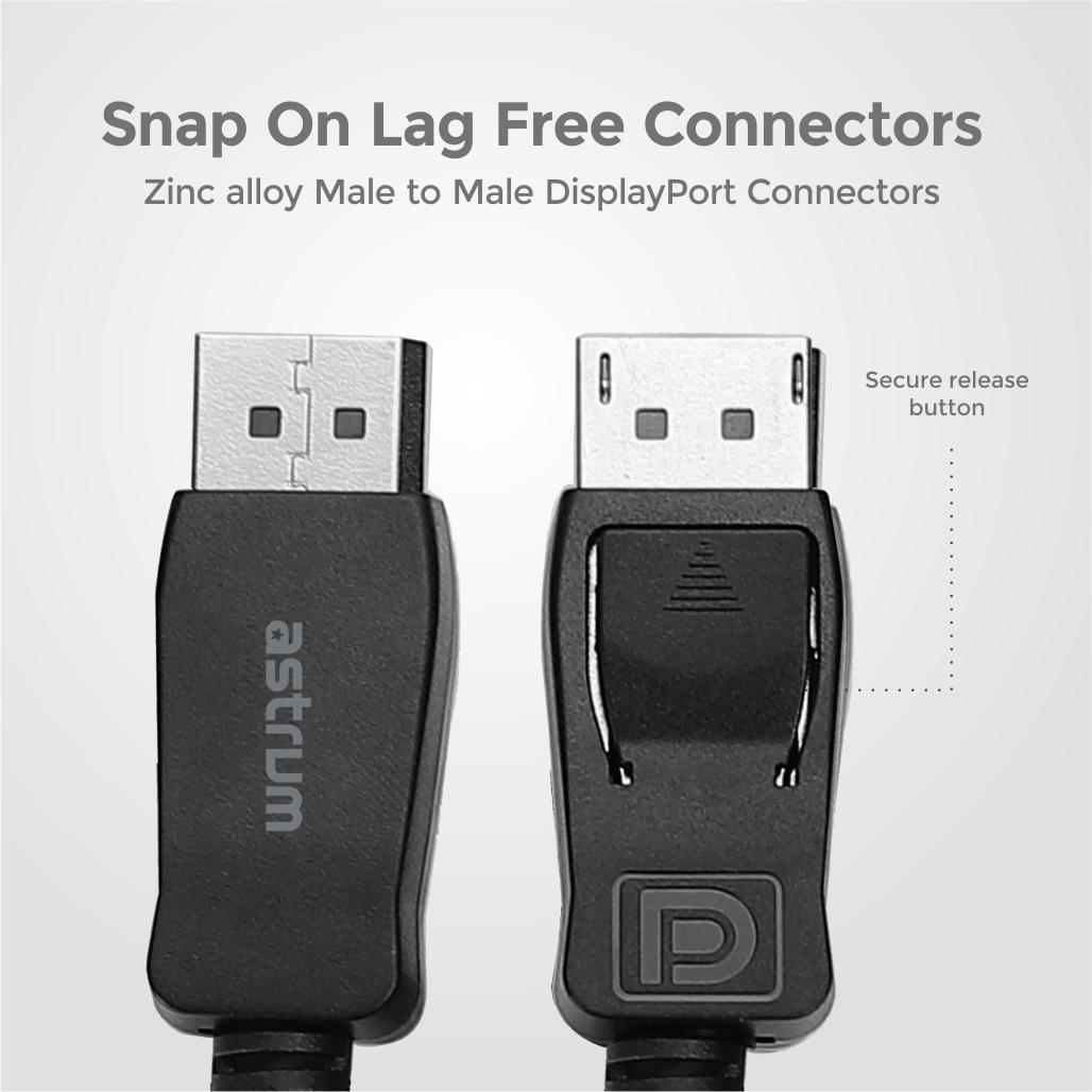 This premium quality Astrum DisplayPort Male to Male cable connects a computer, desktop, laptop, or other devices with DisplayPort to a monitor, projector, HDTV, or gaming graphics card for advanced clear audio and high-definition video. Compatible with any modern display monitors or HDTV such as Samsung, Ben Q, Dell, LG, HP, ASUS, Acer, Alienware monitors, and others.