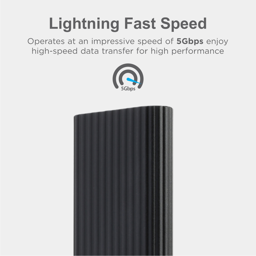 It operates at an impressive speed of 5Gbps, so the user can enjoy high-speed data transfer for high performance, creative and functional tasks such as transferring data, backing up files, etc.