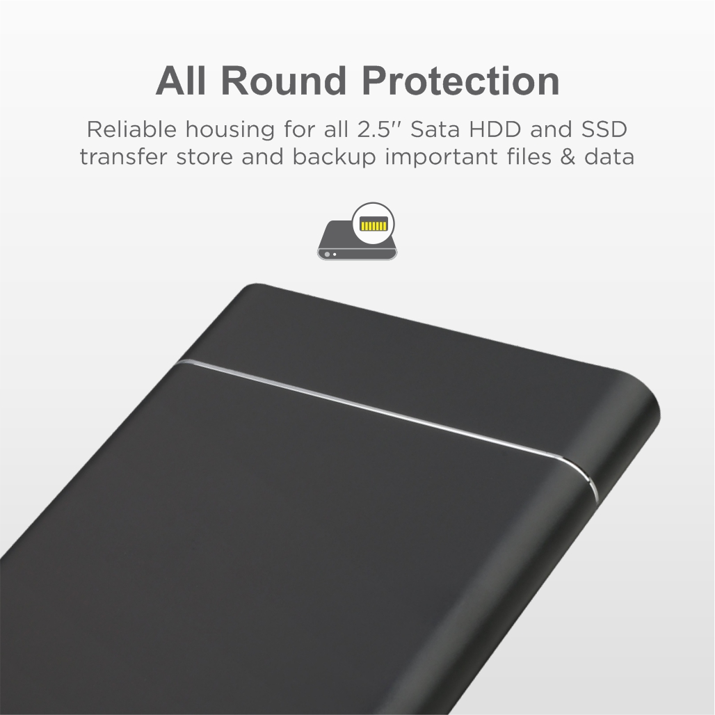 USB 3.0 powered enclosure for slim, 7.0 – 9.5mm (2.5 inches) SATA-II / SATA-III external hard drives and can support up to 2TB of data storage and can protect your external hard drives from damage.
