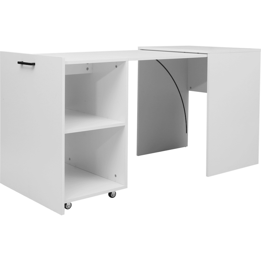 Redefine flexibility in your workspace with the Everfurn Adaptive Desk, a smart solution designed for modern home office environments. Ideal for compact spaces, this space-saving desk with shelves combines clever storage with an expandable work surface, making it perfect for dynamic work or study setups.The built-in roller wheels allow the side table to glide smoothly, transforming the desk into a larger workspace whenever you need extra room. When not in use, it tucks neatly away to maintain a clean, organised layout. Two open shelves provide easy-access storage for books, files, and everyday office essentials, keeping your workspace efficient and clutter-free.Crafted from durable engineered wood with a protective melamine finish, the desk surface is water- and scratch-resistant, ensuring it stands up to daily use. PVC edging adds extra protection against knocks and impact, helping maintain the desk’s finish over time. With a generous load capacity and a thoughtfully designed structure, this computer desk with storage shelves delivers both practicality and long-lasting performance.Whether you’re furnishing a home office, study area, or multifunctional room, the Everfurn Adaptive Desk offers modern design, flexibility, and smart storage in one streamlined piece.Feature HighlightsExpandable Work Surface on Roller Wheels – Easily adapts from compact desk to larger workspaceSpace-Saving Design – Combines shelving and pull-out desk for maximum functionalityTwo Open Storage Shelves – Keeps office essentials organised and within reachDurable Melamine Finish – Water- and scratch-resistant for everyday useEngineered Wood Construction – Designed for reliable daily performancePVC Edge Protection – Helps prevent damage from impact and wearHigh Load Capacity – Supports up to 40kg overall and 10kg per shelfTechnical SpecificationsMaterial: Engineered Wood (PB Board)Finish: Melamine Lamination with PVC EdgingBoard Thickness: 15mm (Top and Sides)Maximum Load Capacity: 40kgShelf Load Capacity: 10kg per ShelfDimensions: 1400mm x 600mm x 720mmWeight: 29.5kgWarranty: 1 YearWhat’s in the Box1 x Everfurn Adaptive Desk1 x Instruction ManualCreate a smarter, more flexible home office with a modern desk that adapts to your space-work comfortably, stay organised, and maximise every square metre.