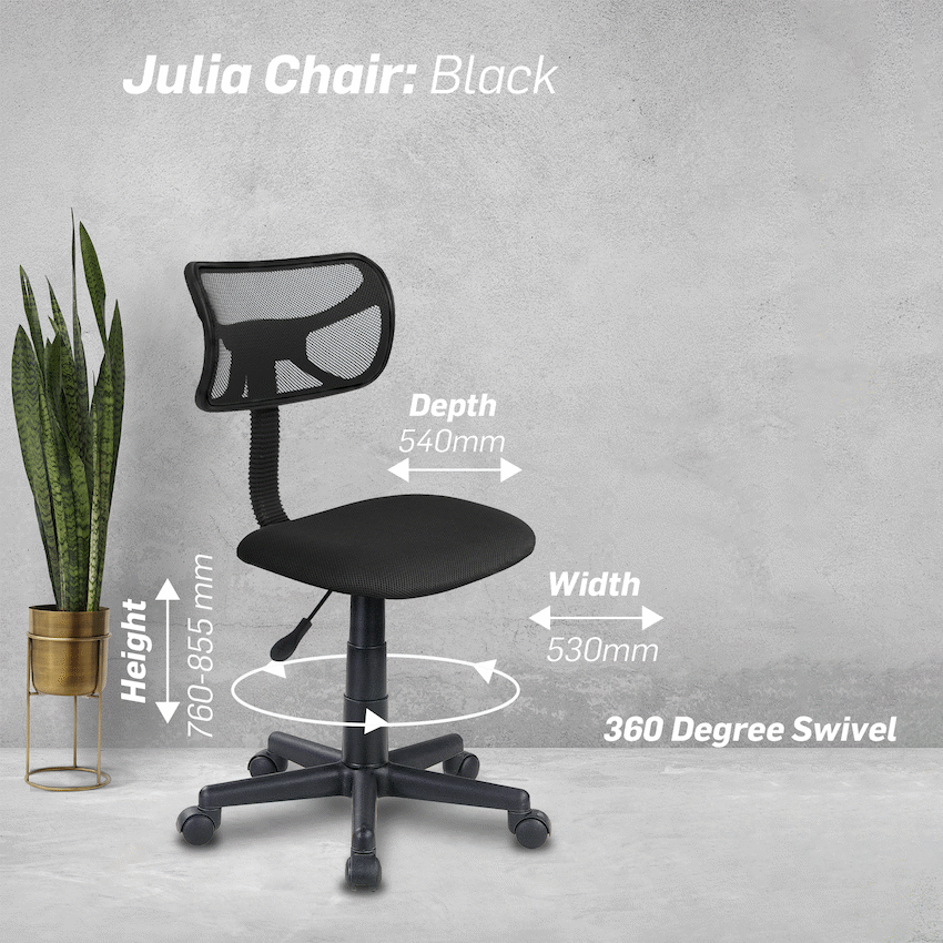 Everfurn Julia Typist Chair , Height Adjustable , Nylon Base , Virgin Foam