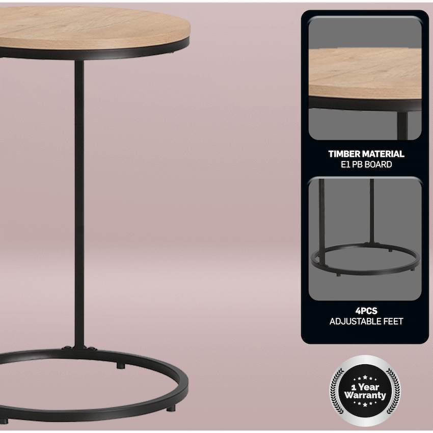 Add functional style to your living space with the Everfurn Nordic Sofa Side Table, a smart and compact solution designed for modern homes. With its slim profile and clever frame design, this sofa side table easily slides over most couch arms, keeping your essentials within comfortable reach while you relax.Inspired by clean Nordic styling, this Nordic side table features a durable engineered wood top finished with water- and scratch-resistant melamine, making it ideal for daily use in busy living rooms. The sturdy powder-coated steel frame provides reliable support and long-lasting performance, while resisting rust and surface scratches over time. Protective PVC edging adds extra durability, helping the table withstand everyday bumps and knocks.Designed with practicality in mind, the compact size makes it an excellent compact side table for apartments, lounges, or reading corners where space is limited. Adjustable, floor-protecting feet help keep the table stable on uneven surfaces, ensuring a steady surface for drinks, books, or decor items. With a strong 30kg weight capacity, this table delivers dependable performance in a sleek, minimalist form.Whether used as a living room side table, couch companion, or occasional table, the Everfurn Nordic Sofa Side Table blends modern design with everyday convenience-perfect for relaxed, clutter-free living.Feature HighlightsSpace-Saving Couch Design – Slides neatly over most couch arms for easy accessCompact Nordic Style – Clean lines suit modern and minimalist interiorsDurable Steel Frame – Powder-coated legs resist rust and scratchesStable Floor-Friendly Feet – Helps level the table and protect flooringResilient Melamine Surface – Water- and scratch-resistant for daily useProtective PVC Edging – Reduces impact damage and improves longevityStrong Load Capacity – Supports up to 30kg with confidenceTechnical SpecificationsMaterial: Engineered Wood (PB Board)Top Board Thickness: 15mmFrame: 0.8mm Powder-Coated SteelFinish: Melamine Lamination with PVC EdgingWeight Capacity: 30kgProduct Weight: 3.4kgDimensions: 400mm x 400mm x 600mmWhat’s in the Box1 x Everfurn Nordic Couch Side Table1 x Instruction ManualComplete your seating area with a compact, stylish side table that brings convenience, durability, and modern Nordic design into your living room.