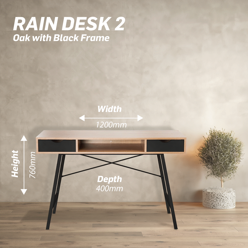 Everfurn Rain Work Desk 2, Two Drawers, Steel Frame, Adjustable Feet, Study Desk