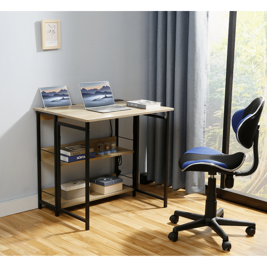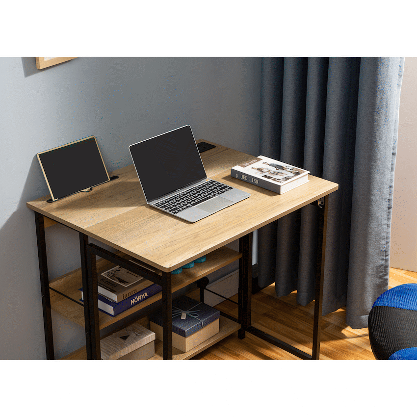 reate a functional and clutter-free workspace with the Everfurn Viron Folding Home Office Desk with USB Ports, designed for modern living and flexible work setups. Ideal for apartments, home offices, and study areas, this compact computer desk combines a space-saving folding design with built-in power access for everyday convenience.The foldable structure allows the desk to be easily stored when not in use, making it perfect for smaller spaces. A secure click-in mechanism ensures the legs remain firmly locked while in use, providing stability and peace of mind during daily tasks. The durable engineered wood desktop features water- and scratch-resistant melamine lamination, offering a smooth, easy-to-clean work surface.Designed with productivity in mind, the desk includes two USB-A ports with a 10W charging output, along with two power plug points-ideal for charging devices, powering a laptop, or keeping accessories within reach. An integrated tablet stand and two storage shelves help keep your workspace organised, while the powder-coated steel frame delivers strength and long-lasting durability. Floor protection leg caps help prevent marks on indoor surfaces.Whether you’re working from home, studying, or setting up a compact workstation, the Everfurn Viron folding desk offers smart design, built-in charging, and everyday practicality.Feature HighlightsFOLDABLE SPACE-SAVING DESIGN – Easily folds away for convenient storageBUILT-IN USB & POWER PORTS – Includes 2 USB-A ports (10W) and 2 plug points for easy chargingSECURE CLICK-IN LEG MECHANISM – Prevents accidental folding during useDURABLE MELAMINE DESKTOP – Water- and scratch-resistant for everyday useINTEGRATED TABLET STAND – Keeps devices upright and within viewTWO STORAGE SHELVES – Helps keep essentials organisedPOWDER-COATED STEEL FRAME – Rust- and scratch-resistant for long-term durabilityFLOOR PROTECTION LEG CAPS – Helps protect indoor flooring surfacesTechnical SpecificationsDesktop Material: Engineered wood (PB board)Surface Finish: Melamine lamination with PVC edgingFrame Material: Powder-coated steelSteel Thickness: 0.8mmTop Board Thickness: 15mmUSB Ports: 2 x USB-A (10W output)Power Ports: 2 x plug pointsWarranty: 1 YearDimensionsWidth: 800mmDepth: 640mmHeight: 760mmWeight: 15.5kgWhat’s in the Box1 x Everfurn Viron Folding DeskInstruction ManualEnjoy a smart, space-efficient workspace with built-in charging-perfect for modern home offices, study areas, and compact living spaces.