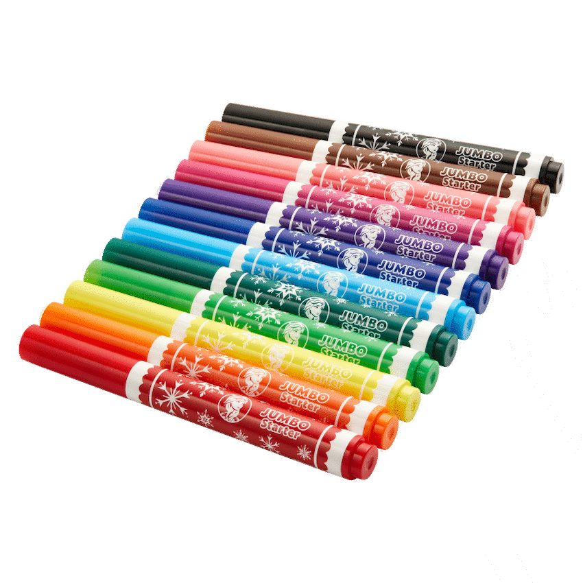 The cutest Frozen Jumbo Fibre Markers that feature dual stroke tips and a round ergonomic design for little ones to easily grip. Perfect for arts and crafts, they have a strong tip for durable drawing as they deposit bright and vibrant colours. Easy to wash and non-toxic, moms and dads will love them too!Special Features:12 Jumbo Starter MarkersDual Stroke Tip – Fine and WideWashableBright and Vivid ColoursJumbo Round Body designed for Junior ChildrenAge 3+Strong tip for Durable DrawingNon-ToxicWhat’s in the boxx12 Frozen Jumbo Fibre Markers