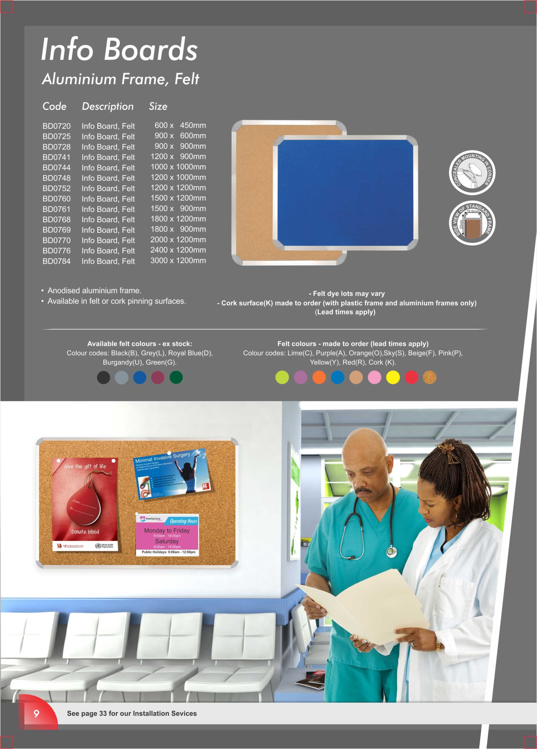 – Cork surface(K) made to order (with plastic frame and aluminium frames only)