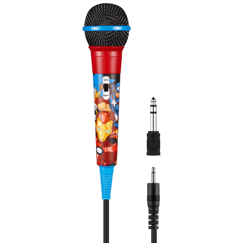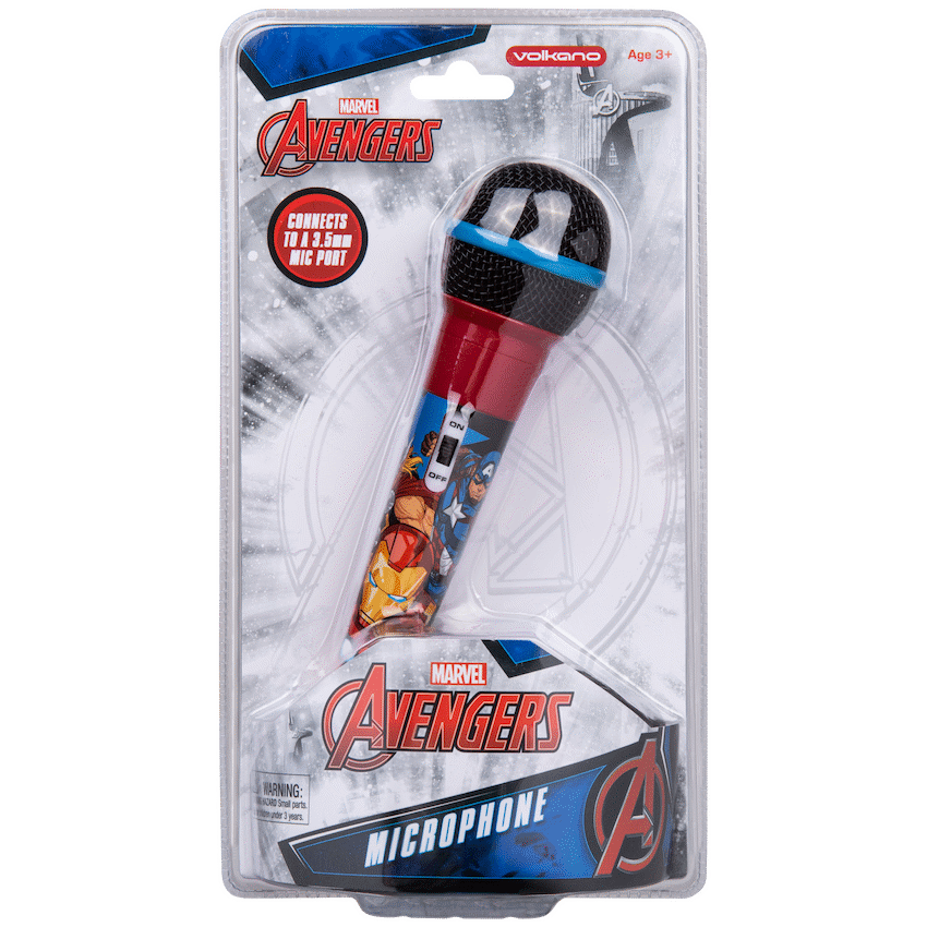 Take centre stage with the Avengers auxiliary microphone, designed for kids and fans who love to sing, perform, or roleplay as their favourite superheroes! The Marvel 11201 Series Auxiliary Microphone delivers a fun, authentic singing experience with a durable design and vibrant Avengers theme.With its 3m extra-long cable, kids can move freely while performing, and the 3.5mm Aux connection ensures compatibility with most karaoke machines, speakers, and audio devices. The included 6.5mm adapter expands connectivity even further, making this mic versatile for different setups.Whether it’s a birthday party, family karaoke night, or superhero roleplay session, this Avengers mic is built to keep the fun going. Lightweight, durable, and easy to use, it’s the perfect microphone for young performers and Marvel fans alike.Feature HighlightsReal Singing Experience – Designed to amplify fun performances and playAux Compatible – Works with karaoke machines, speakers, and other Aux input devicesExtra-Long 3m Cable – Gives kids plenty of room to move around while singingIncludes 6.5mm Adapter – Expands compatibility with various audio systemsAvengers Design – Bold superhero theme makes every performance excitingTechnical SpecificationsMaterial: PlasticMicrophone Cable Length: 3mMicrophone Sensitivity: 72dBMax Sound Pressure Level: 120dBRating: 1.3V ? 0.03WAux Adapter: 3.5mm to 6.5mmWhat’s in the BoxMarvel Avengers Auxiliary Microphone6.5mm Aux AdapterSing, play, and perform like a superhero with the Avengers auxiliary microphone – built for fun, durability, and endless entertainment!