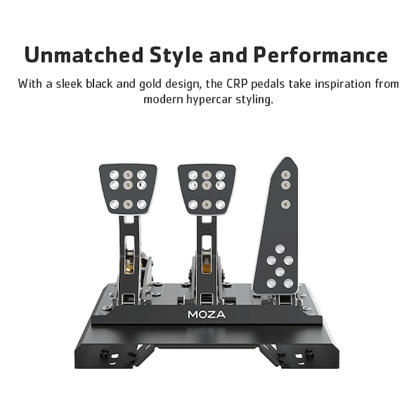 Introducing the Moza CPR Load Cell Three Pedals with Base – a revolutionary advancement in precision and realism for your driving simulation experience. This cutting-edge load cell pedal system redefines what it means to have accurate control over your virtual vehicle, offering unparalleled sensitivity and feedback that closely mimic real-world driving dynamics.Features:Precision Load Cell Technology: The Moza CPR Load Cell Three Pedals employ advanced load cell sensors in each pedal, providing an incrediblyaccurate and responsive feel to your inputs. This technology translates even the subtlest changes in pressure into precise in-game actions, makingbraking, accelerating, and clutch engagement feel incredibly realistic.Adjustable Pedal Resistance: Customization is key, and these pedals offer adjustable pedal resistance to cater to your personal driving preferences. Tailorthe feel of each pedal to match your desired level of resistance, ensuring an immersive and adaptable driving experience.Three-Pedal Setup: The Moza CPR includes three pedals – accelerator, brake, and clutch – just like a real car. This complete pedal set allows for true-to-life driving experiences, letting you finely tune your pedal inputs to suit various racing and driving scenarios.Sturdy and Stable Base: The included base is constructed from high-quality materials, providing stability and durability during intense racing sessions. Itsergonomic design ensures optimal pedal placement for comfort during extended gameplay sessions.Realistic Pedal Feel: The Moza CPR’s progressive pedal design replicates the natural feel of a car’s pedals. As you depress the brake pedal, for example,you’ll feel the resistance gradually increase, simulating the sensation of applying force to a real brake system.High-Quality Build: Crafted with attention to detail, the Moza CPR Load Cell Three Pedals with Base are built to last. Quality materials ensure that yourinvestment is a long-term addition to your gaming setup.Specifications:- Overall Material : CNC Aluminum Alloy- Max Range of Pressure Sensor : 100KG- Pedal Force : Adjustable- Pedal Face Angle : Adjustable- Pedal Distance : Adjustable- Pedal Flush : Adjustable- Pedal Travel :AdjustableExperience the thrill of authentic driving dynamics and take your racing simulator to new heights with the Moza CPR Load Cell Three Pedals with Base. Immerse yourself in the world of virtual racing like never before, and elevate your performance with precision, realism, and control that sets a new standard in sim racing technology.What’s in the box1 x MOZA CRP Load Cell Three Pedals with Base1 x User Manual