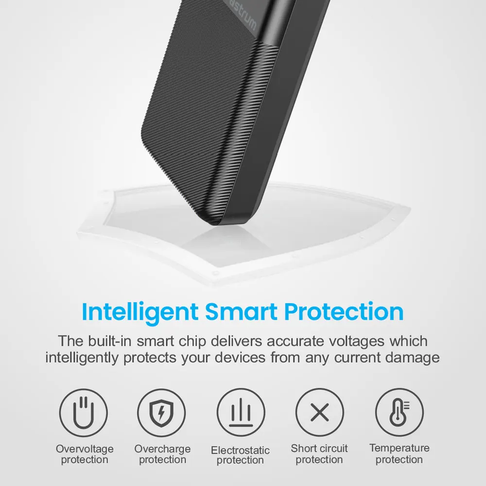 In-built smart chip protects from over-voltage, short-circuit, & over-charging.