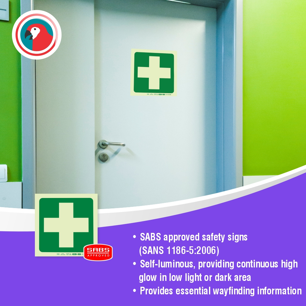 PHOTOLUMINESCENT 190MM SAFETY SIGN -E7-GREEN CROSS