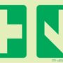 PHOTOLUMINESCENT 190MM SAFETY SIGN -E7A-GREEN CROSS+ARROW DOWN