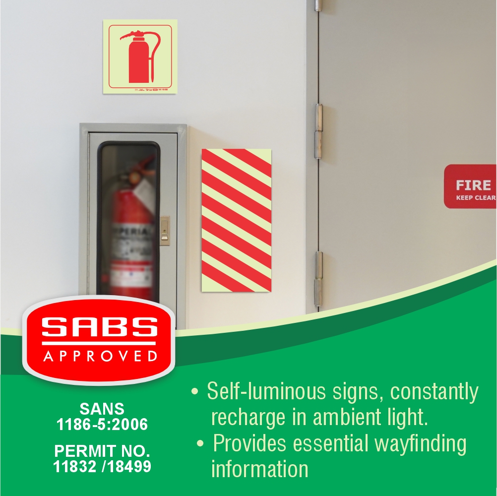• Self-luminous, these signs constantly recharge in ambient light, providing continous high glow in low light or dark areas