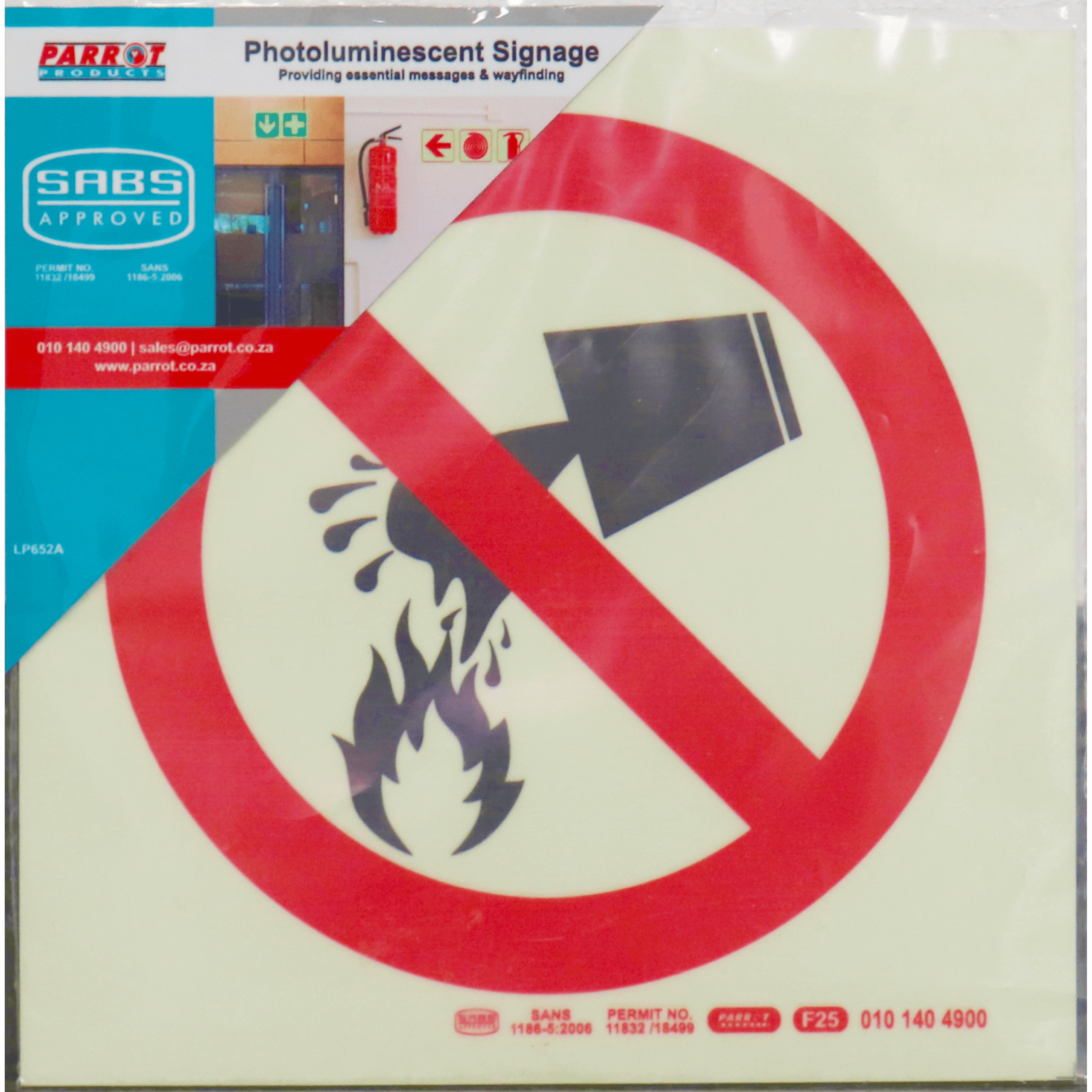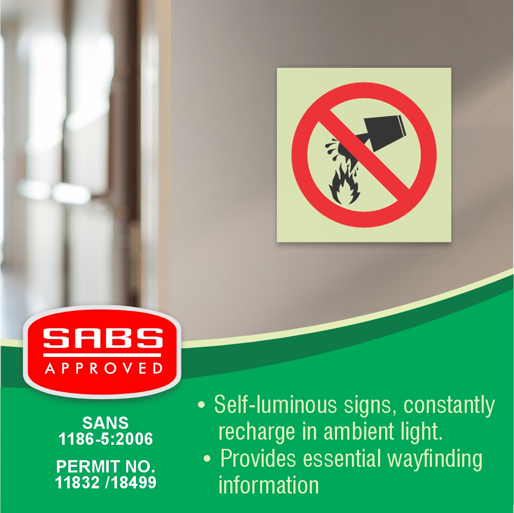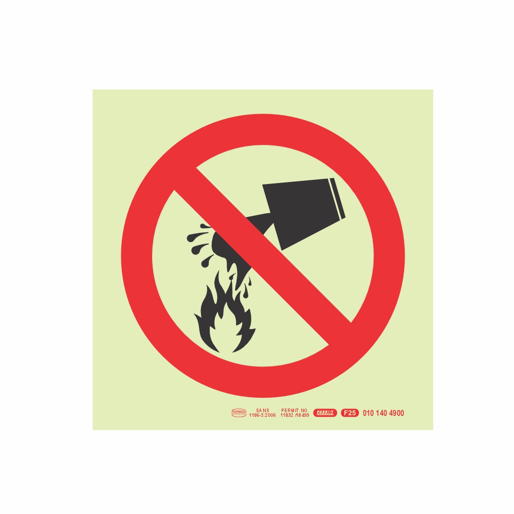 Photoluminescent 190mm Safety Sign F25 Water Prohibited As Extinguishing Agent R62.10