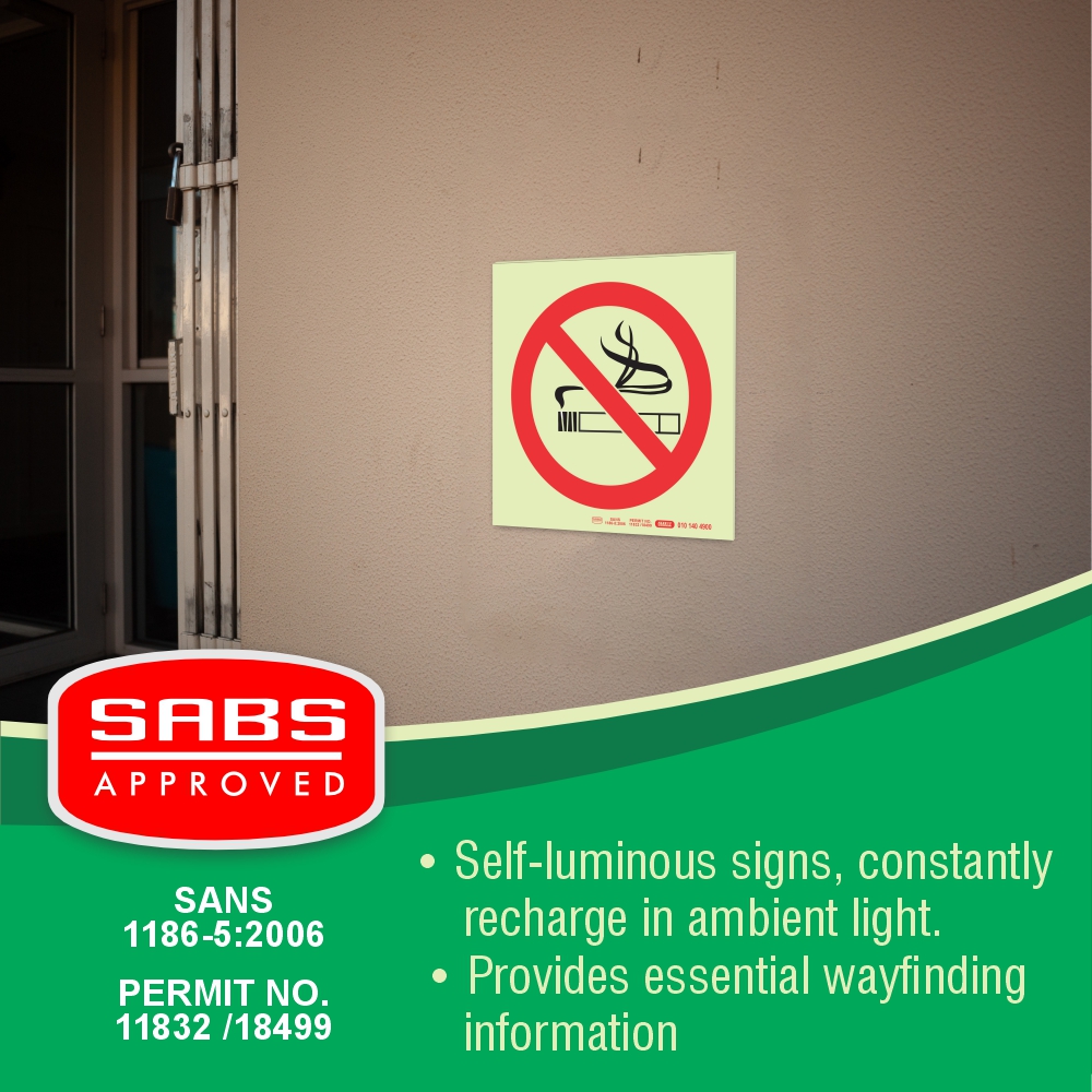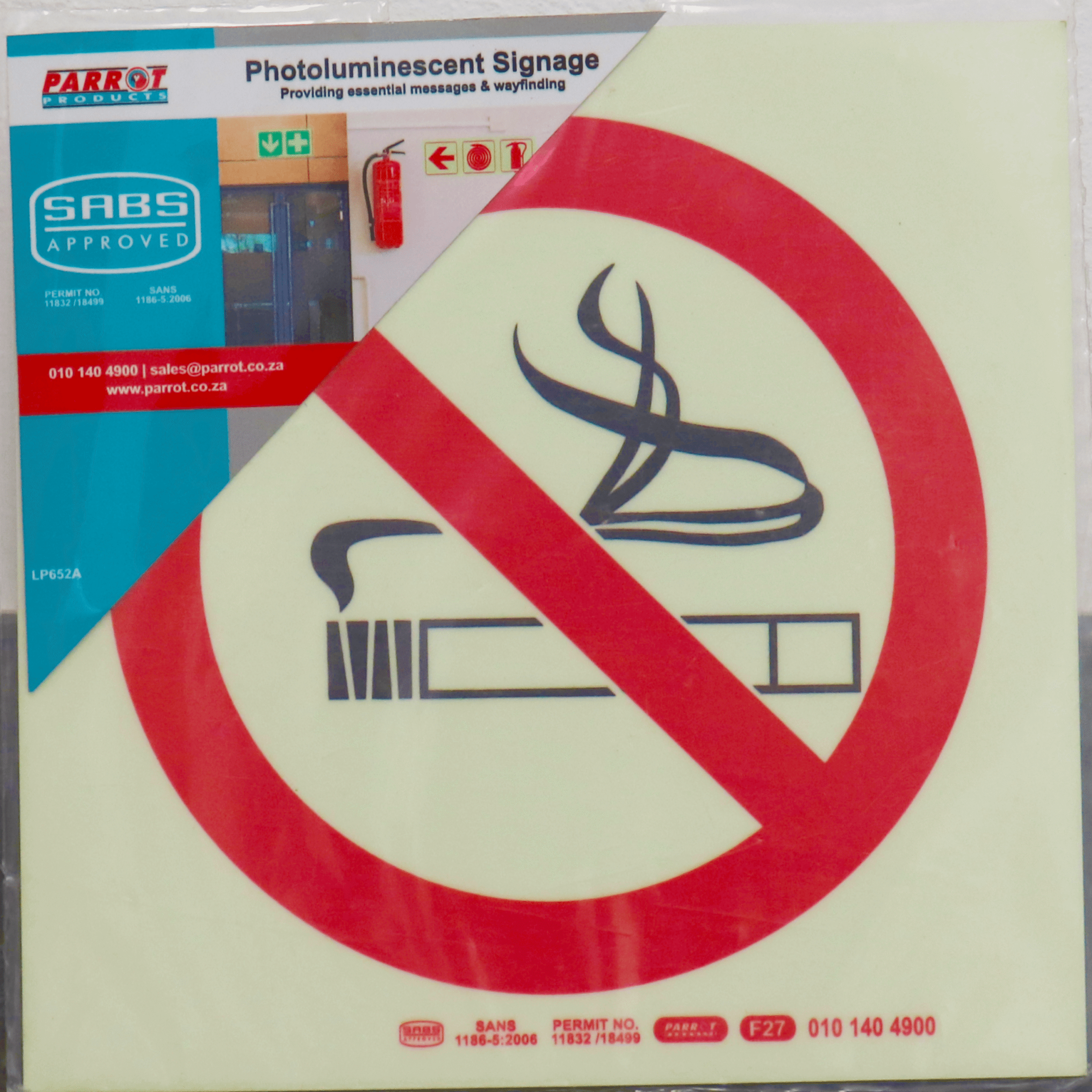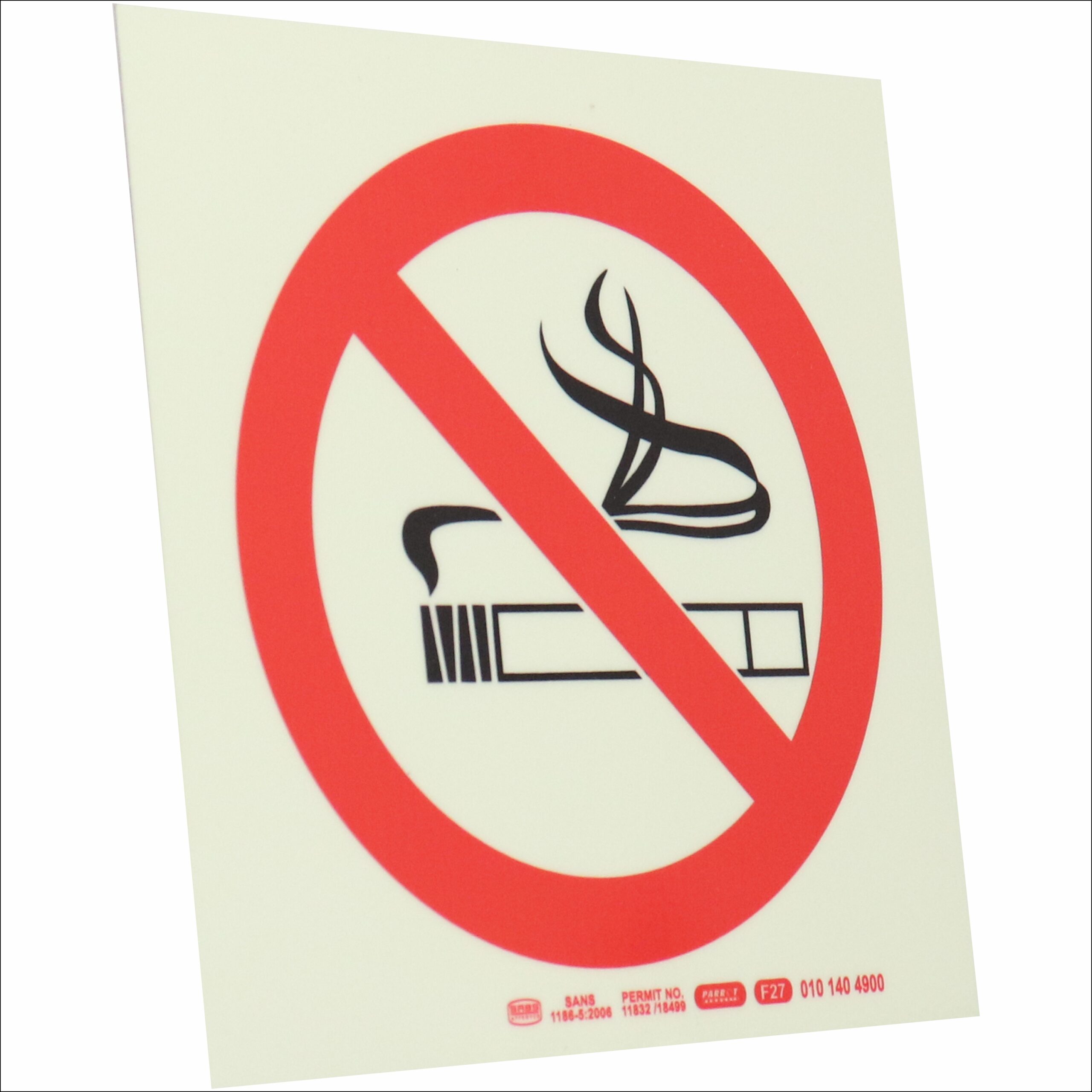 Photoluminescent 190mm Safety Sign F27 No Smoking R62.10