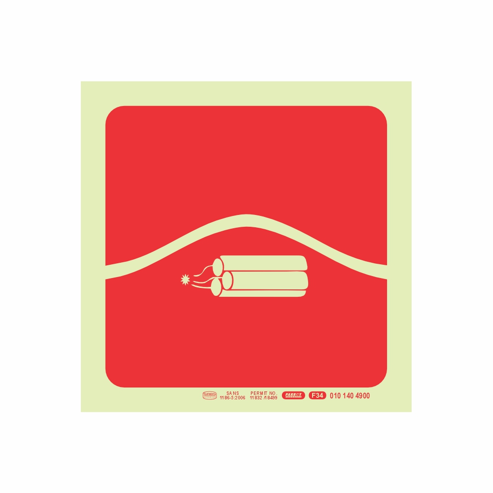 Photoluminescent 190mm Safety Sign F34 Bomb Bag R62.10