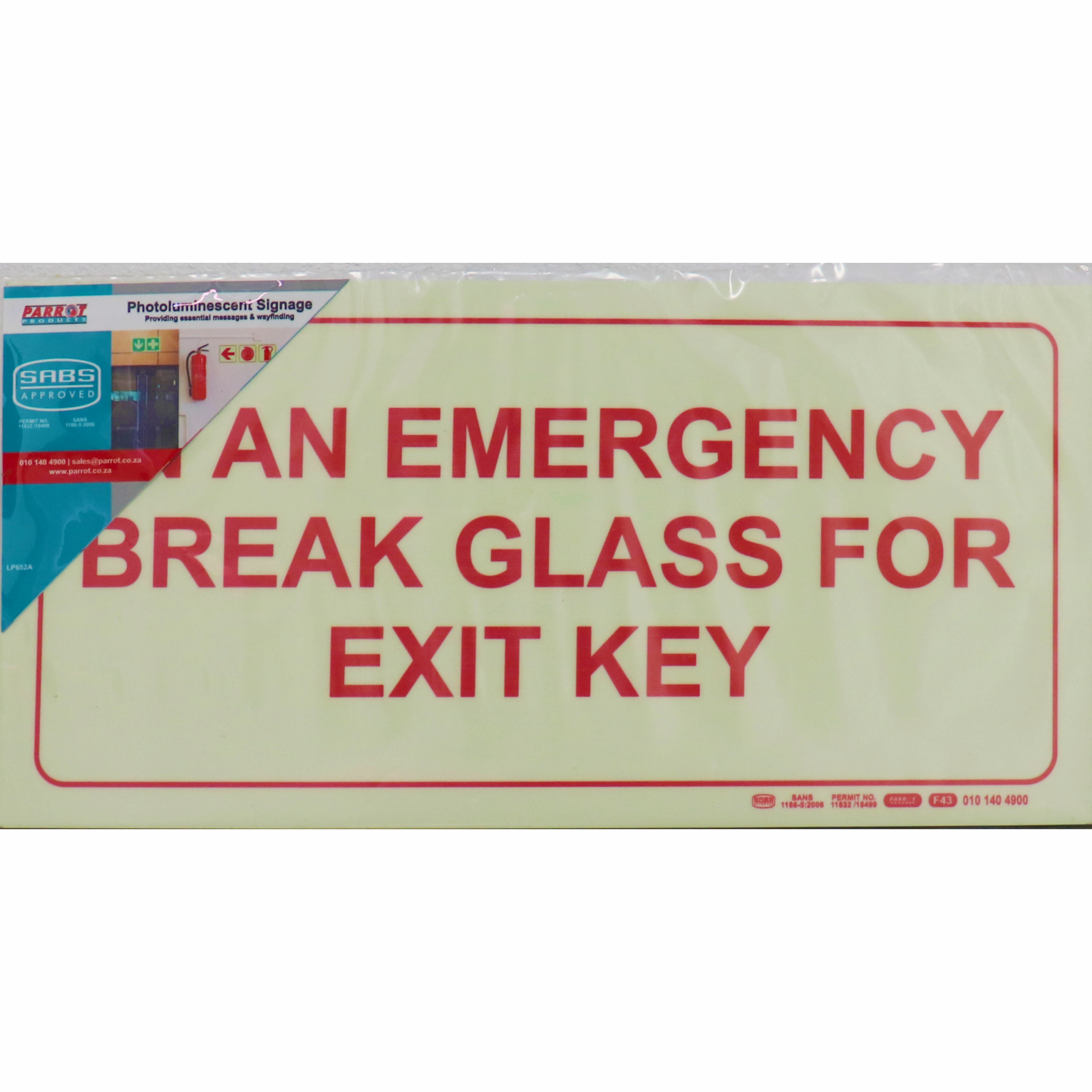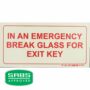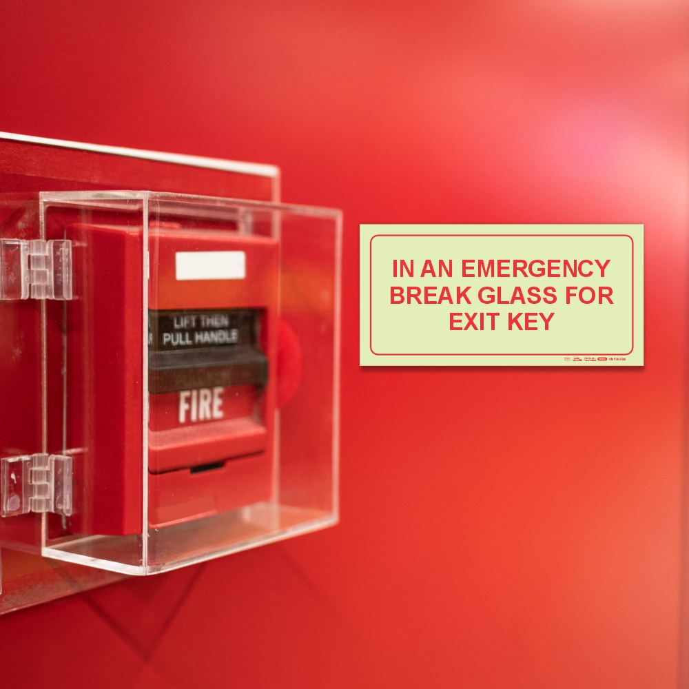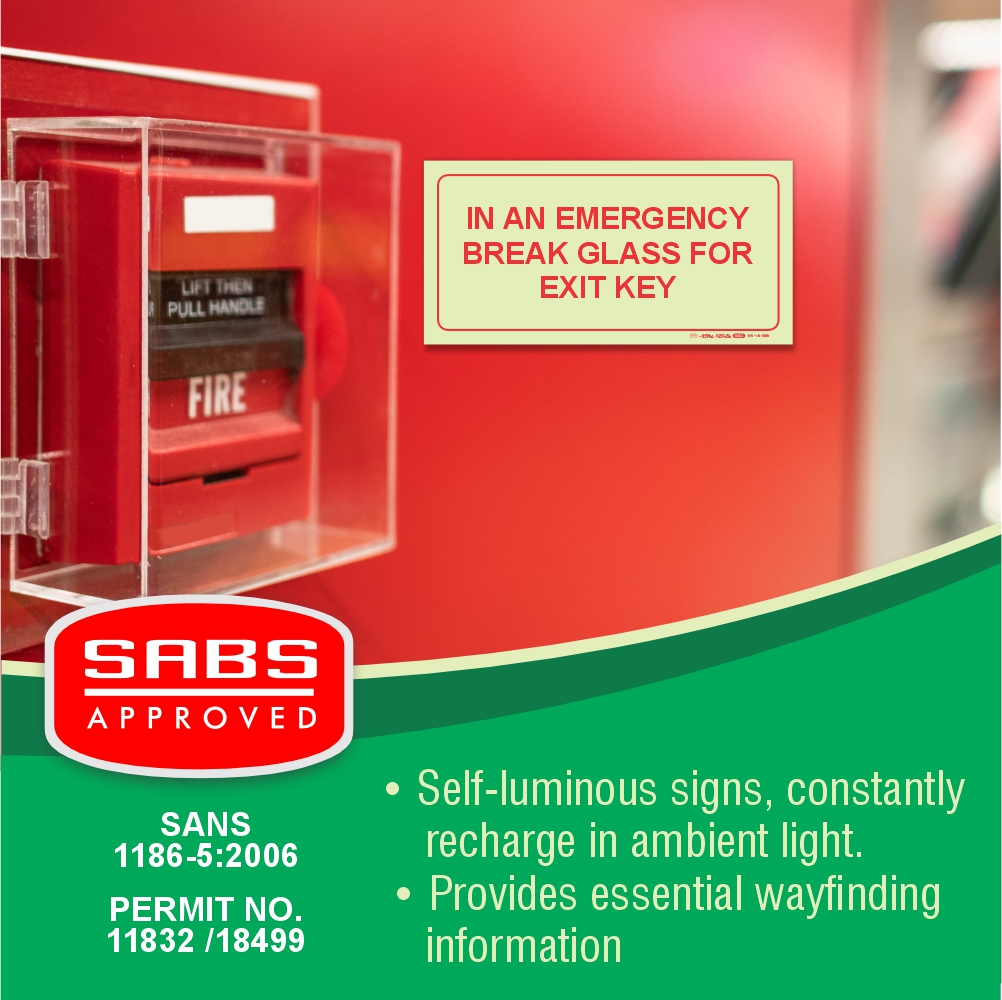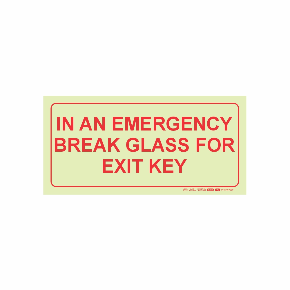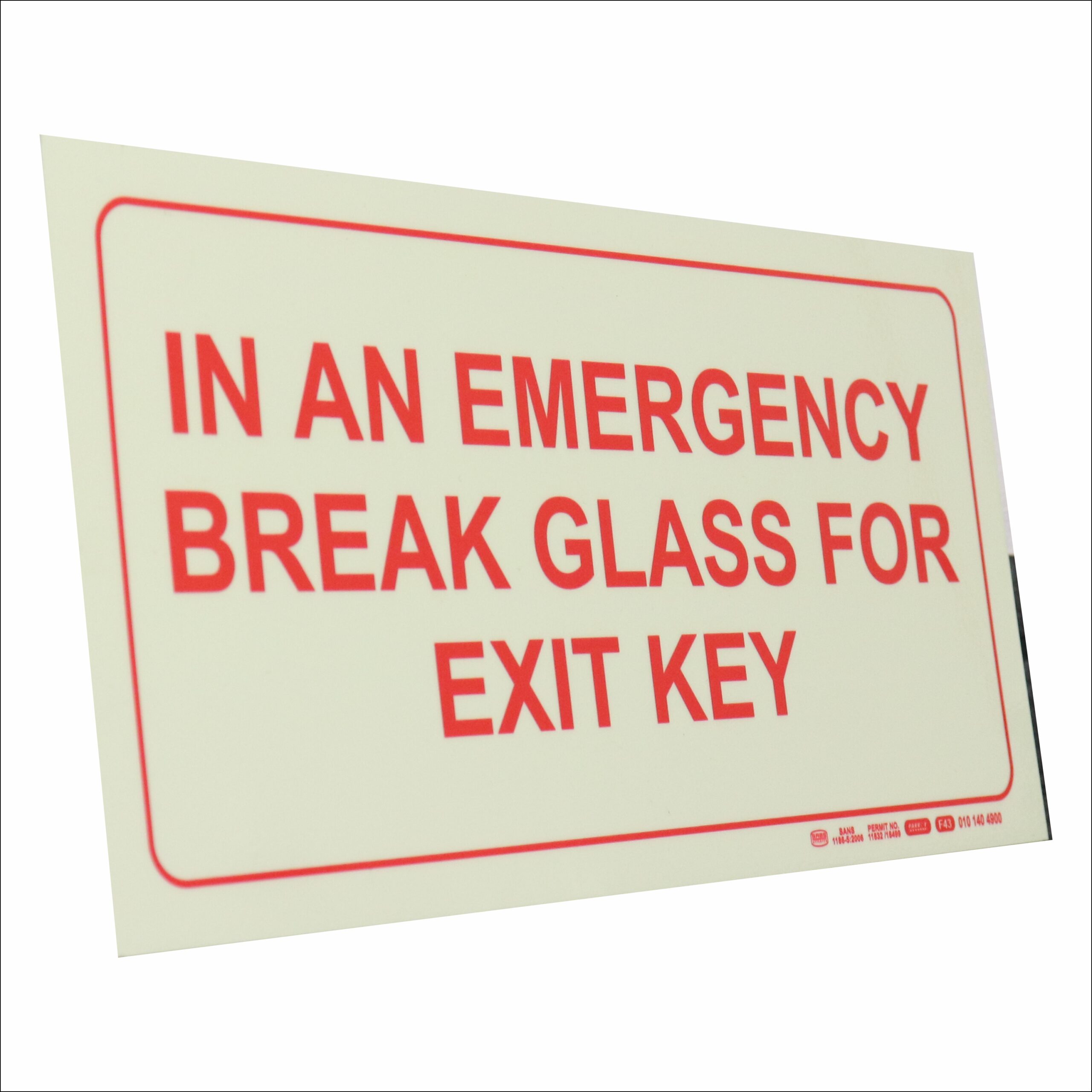 Photoluminescent 190mm Safety Sign F43 In An Emergency Break Glass For Exit Key R146.05