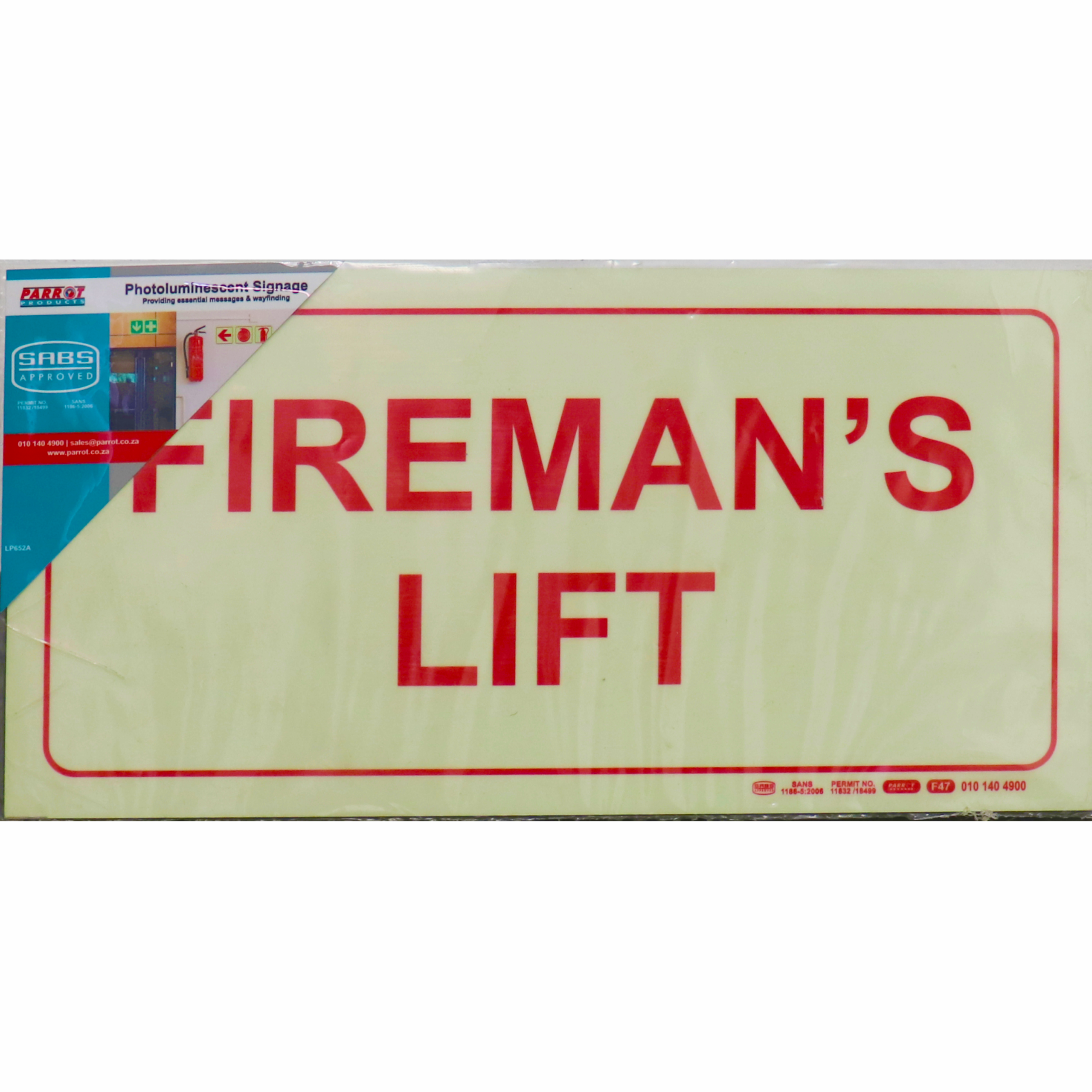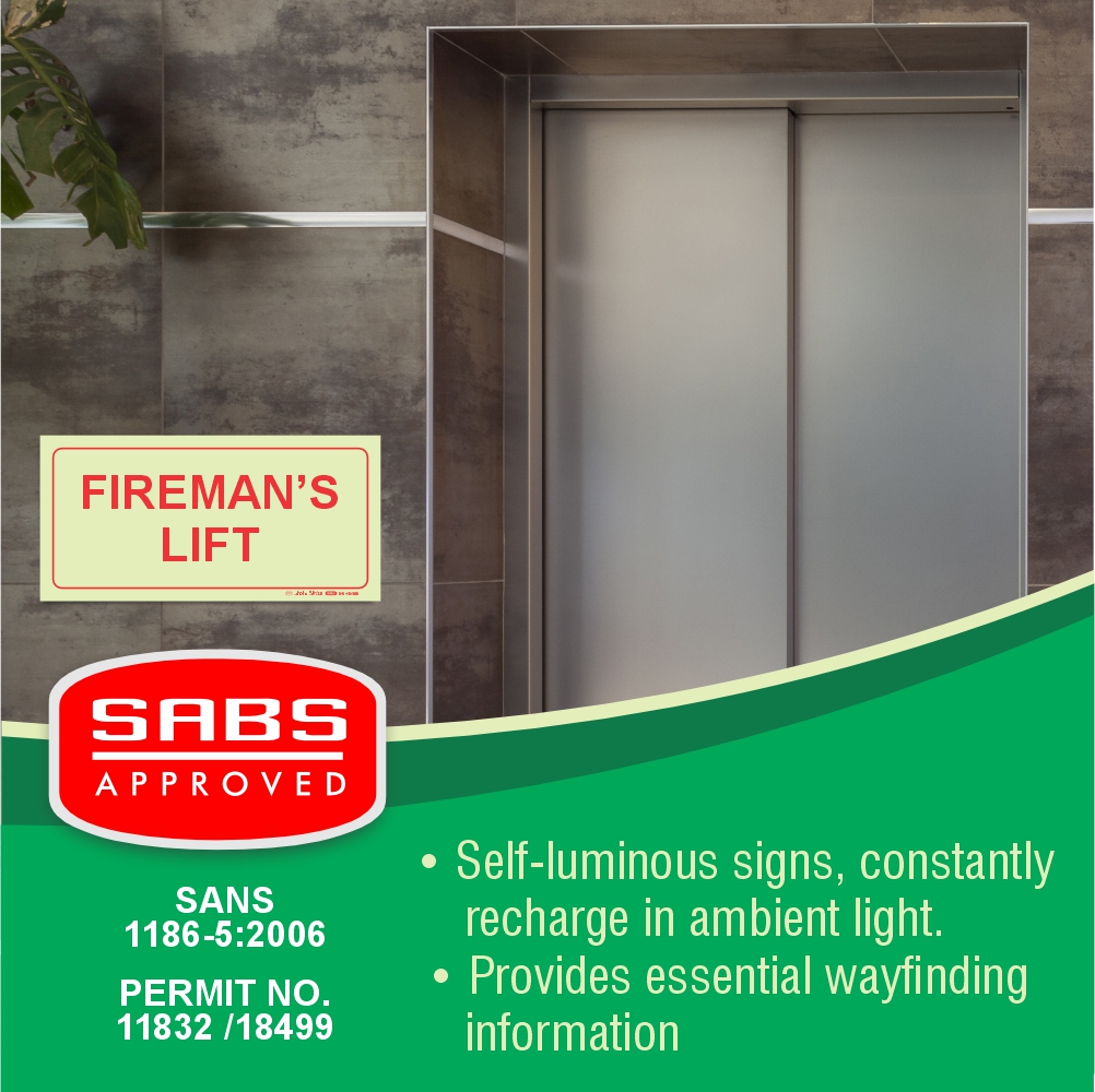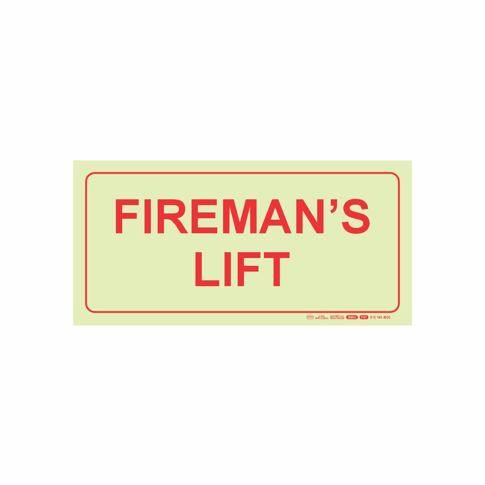 Photoluminescent 190mm Safety Sign F47 Firemans Lift R146.05