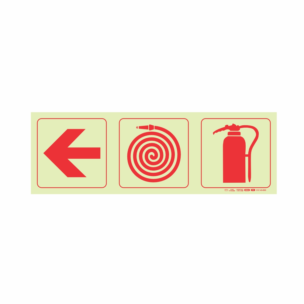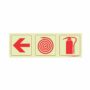 PHOTOLUMINESCENT 190MM SAFETY SIGN – F5-ARROW LEFT+FIRE HOSE REEL+FIRE EXTINGUISHER