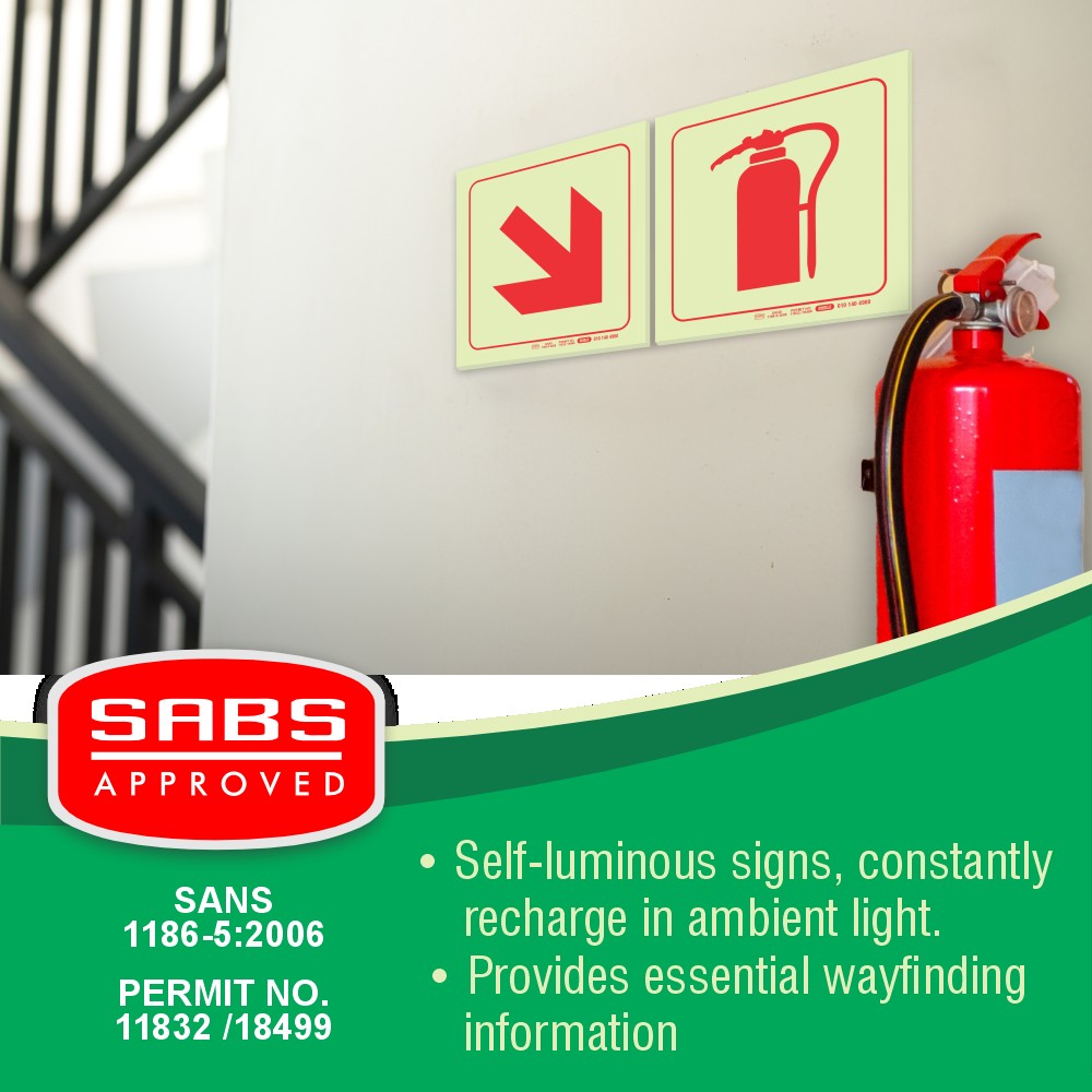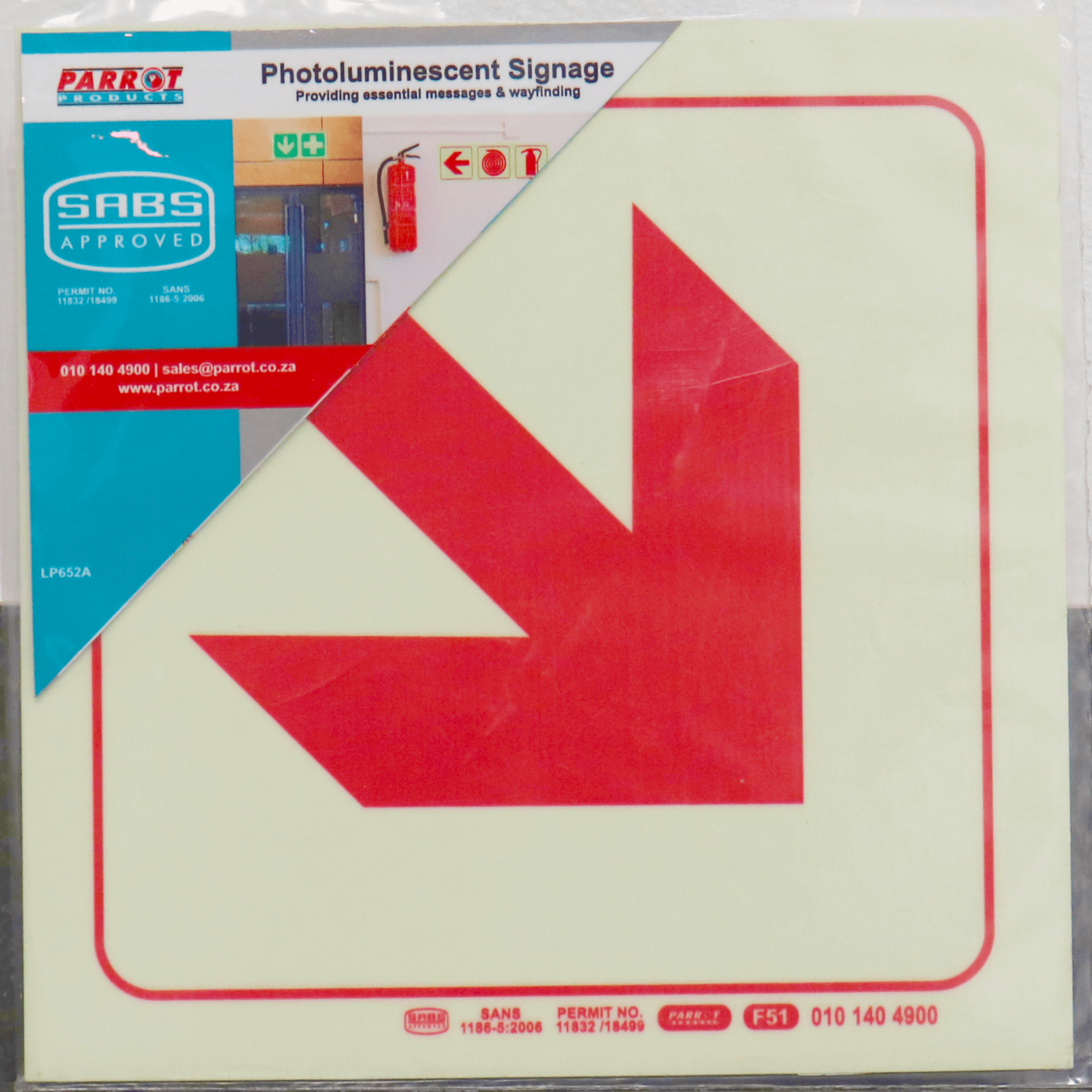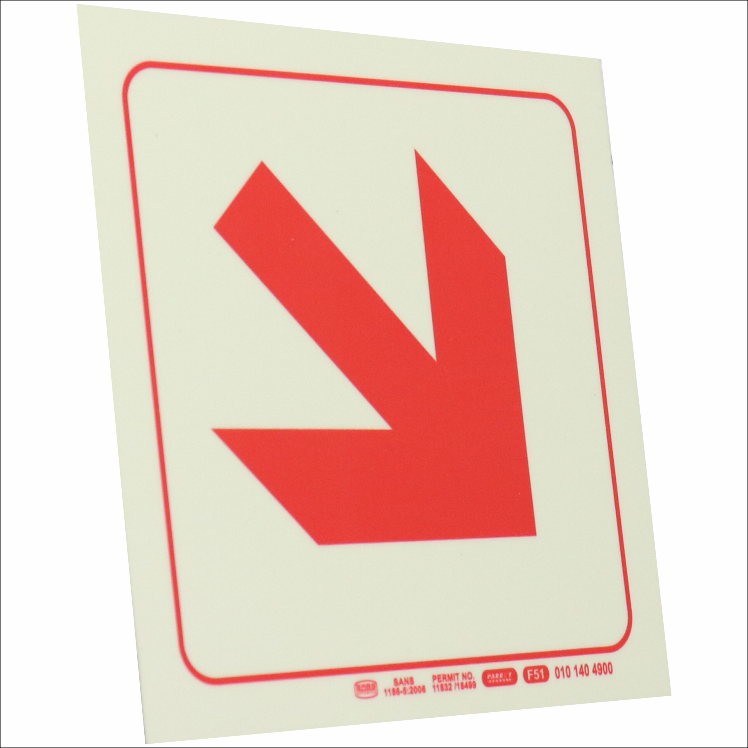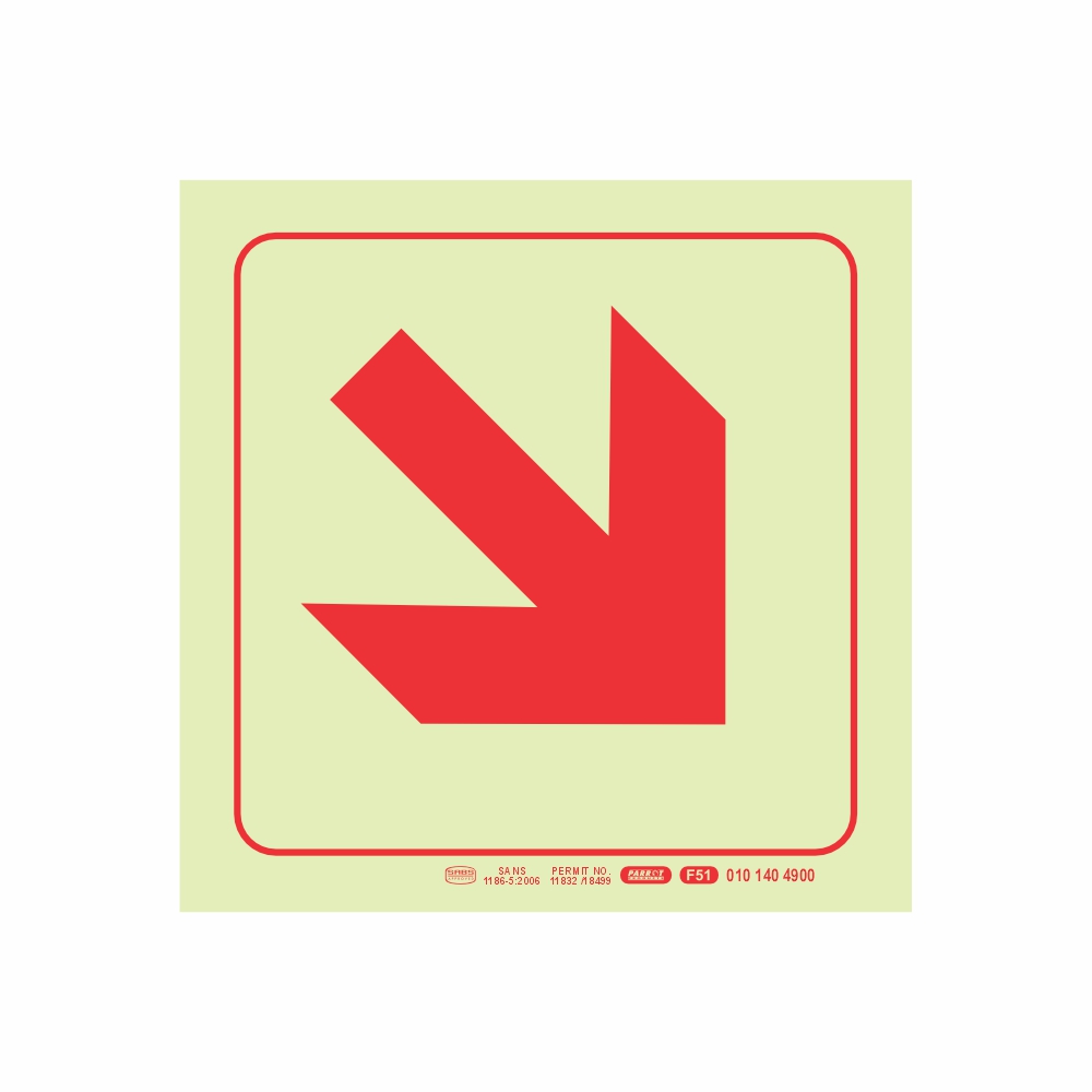 Photoluminescent 190mm Safety Sign F51 Diagonal Arrow Down And Right R146.05