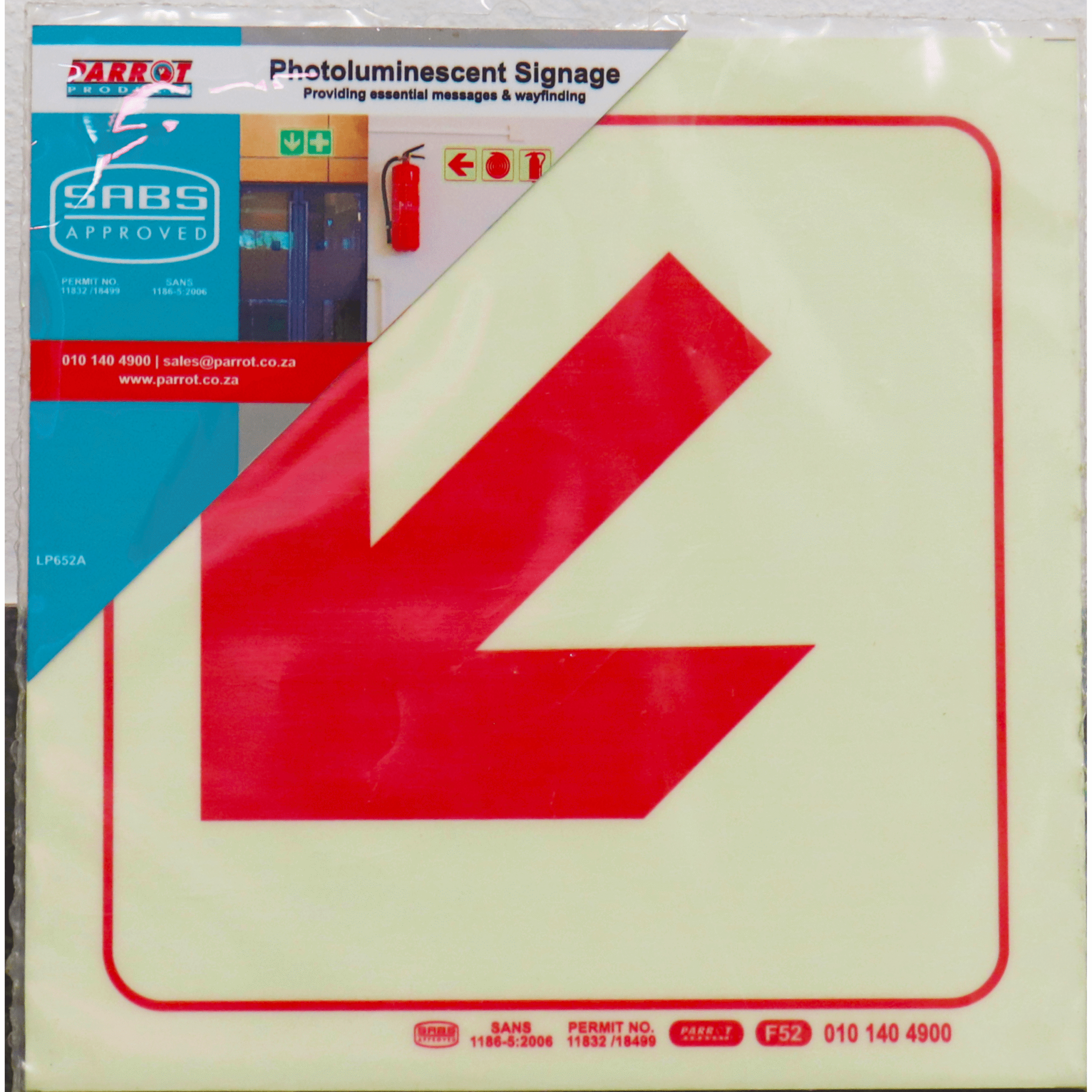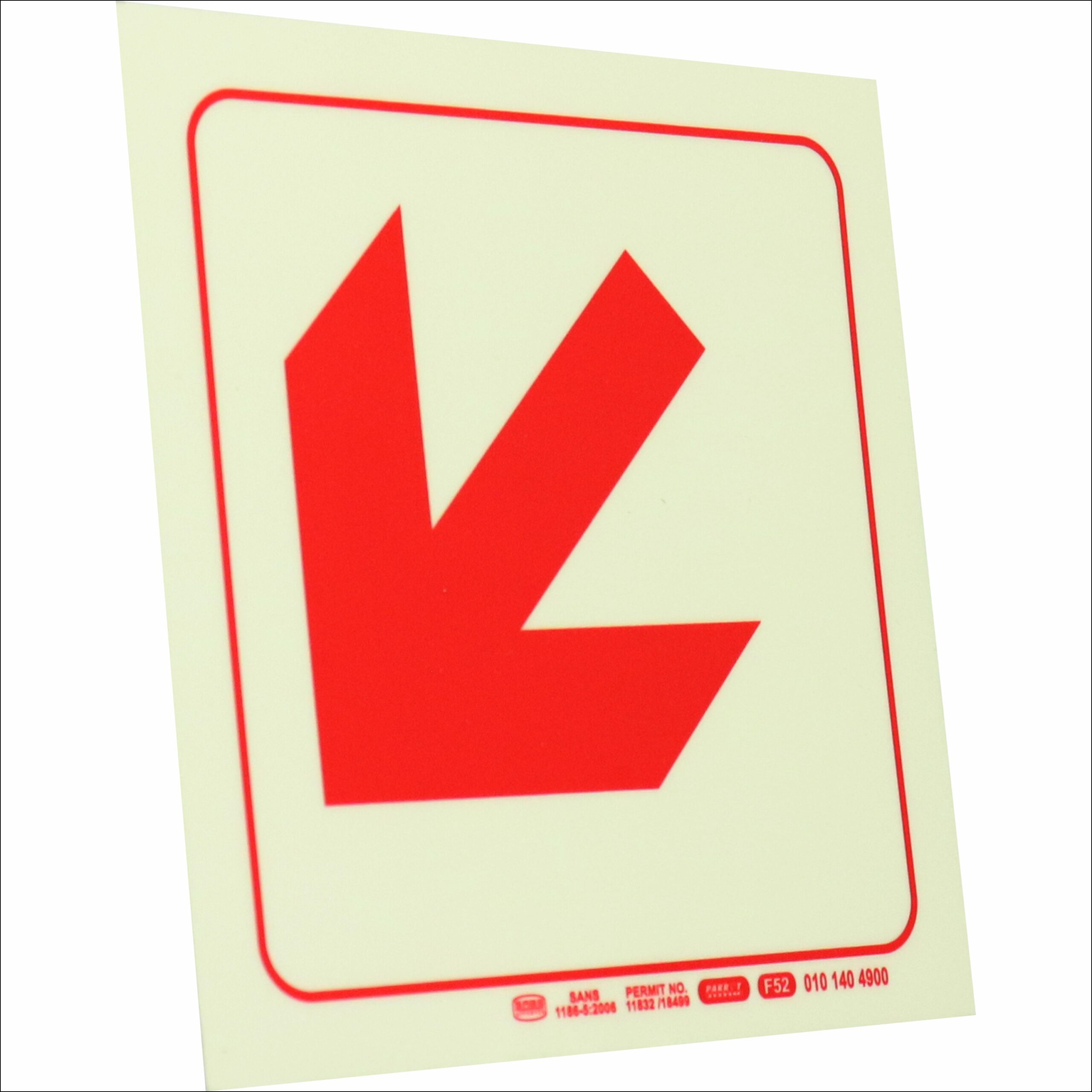 Photoluminescent 190mm Safety Sign F52 Diagonal Arrow Down And Left R146.05