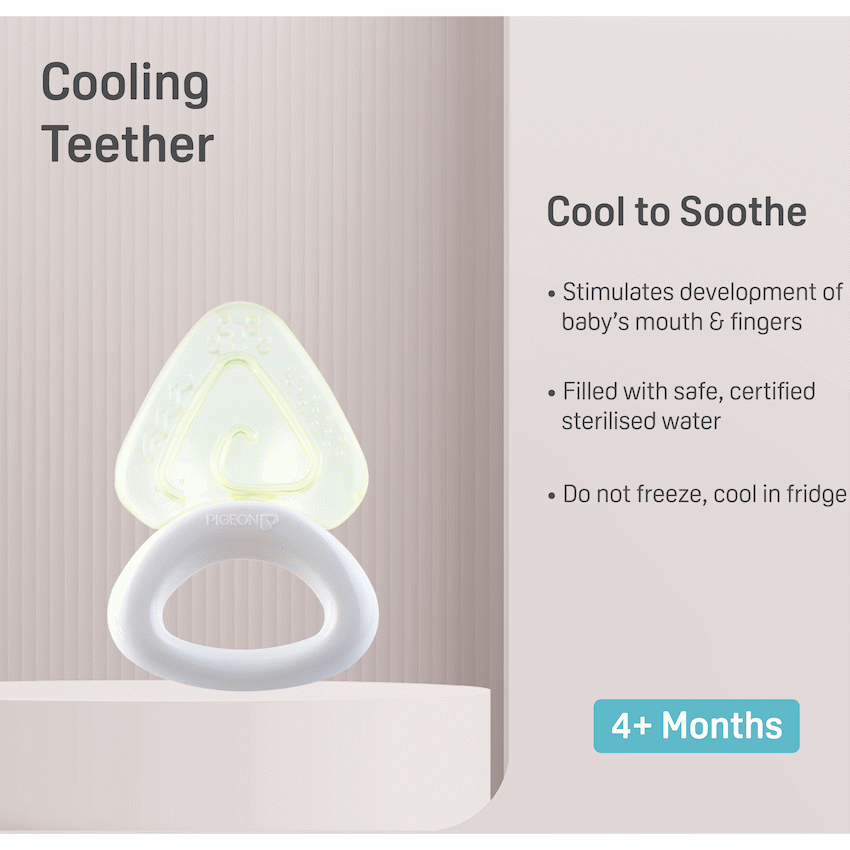 Stimulates development of baby’s mouth & fingers. When baby starts to teething, Place teether in the refrigerator to soothe baby’s gums. for babies 4+ months.Contains safe, sterilized waterCool in fridge.BPA Free