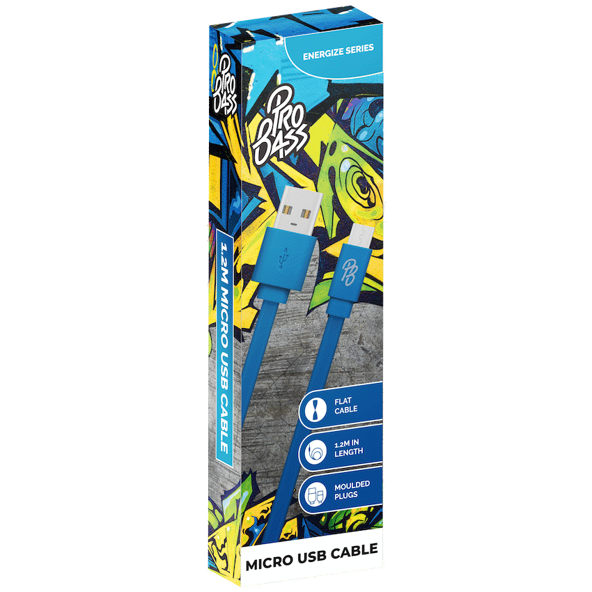 Pro Bass Energize Series Packaged Micro USB Cable – Blue 1.2m