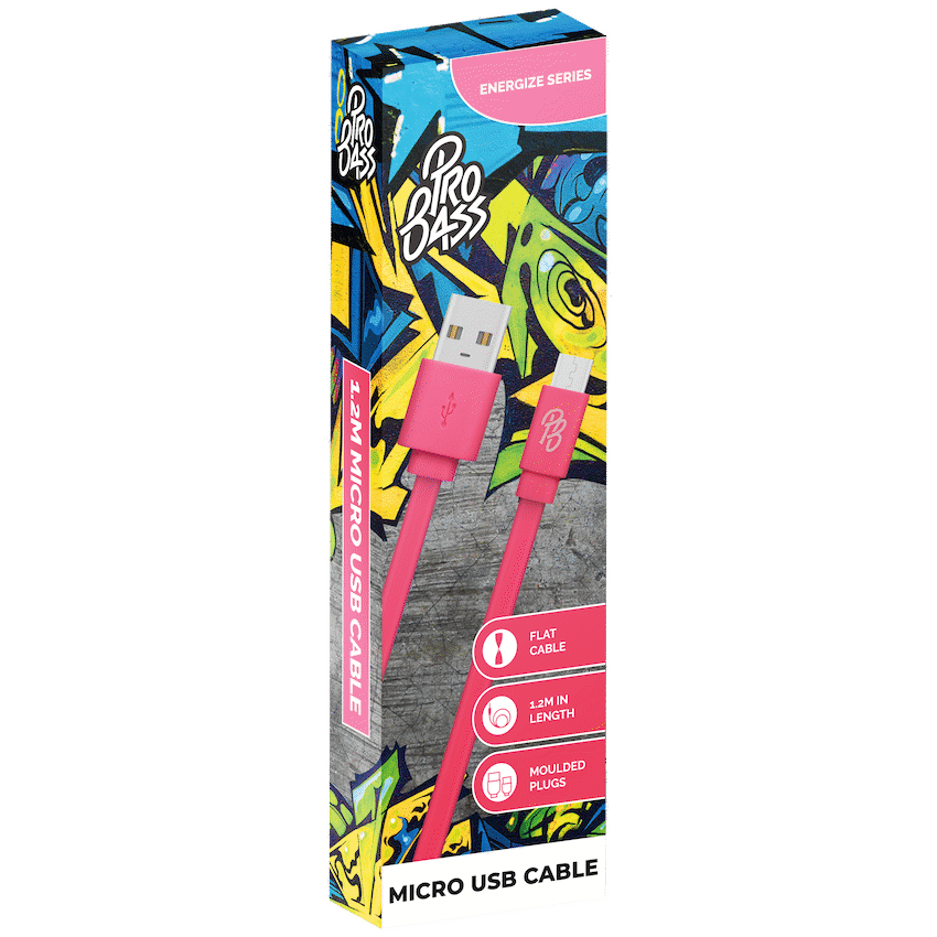 Pro Bass Energize Series Packaged Micro USB Cable – Pastel Pink 1.2m