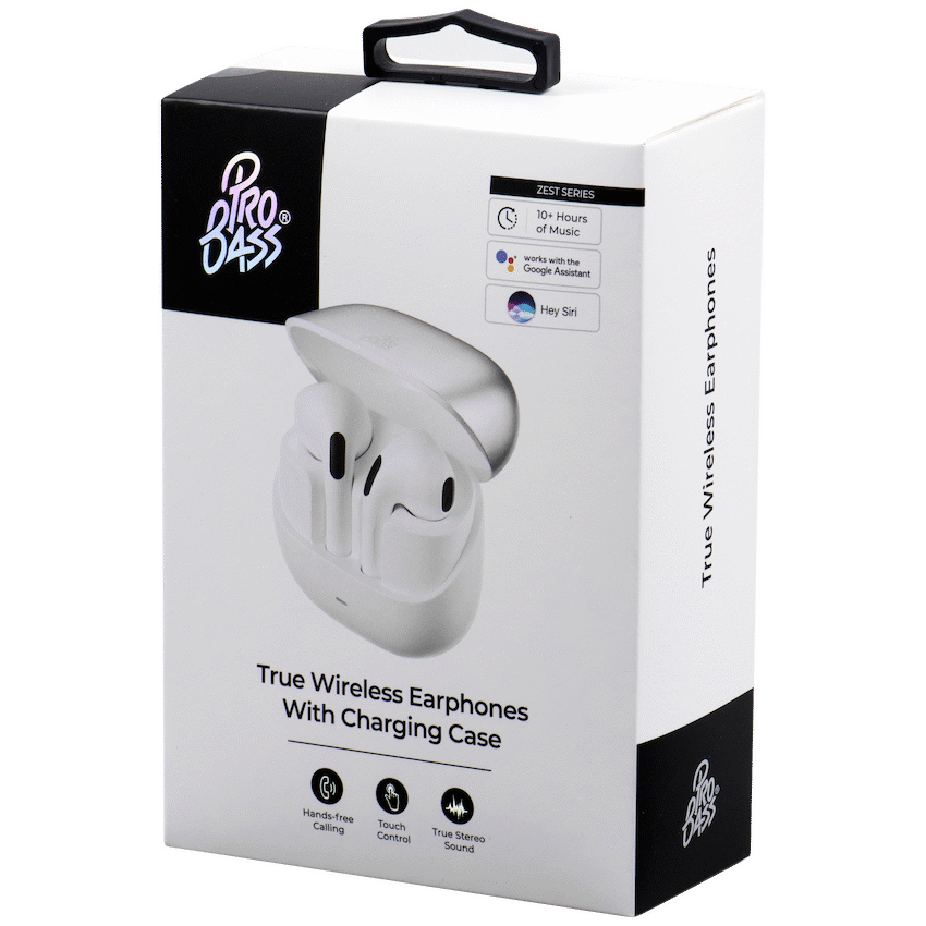 Keep it simple and sound great with the Pro Bass Zest Series-compact true wireless earphones designed for daily listening and calls. These Pro Bass TWS earbuds pair fast via Bluetooth 5.3 and deliver clear, balanced audio from large 13 mm drivers. A built-in mic supports hands-free calling, so you can take meetings or chats on the move without reaching for your phone. Tap-friendly touch control makes it easy to play/pause and skip tracks, while the pocketable charging case adds extra power for the day. Enjoy up to 3.5 hours on a single charge, with two additional recharges from the case for up to 10.5 hours total. Finished with USB-C convenience, they’re an easy pick for commuters, students, and anyone who wants solid sound without the fuss.