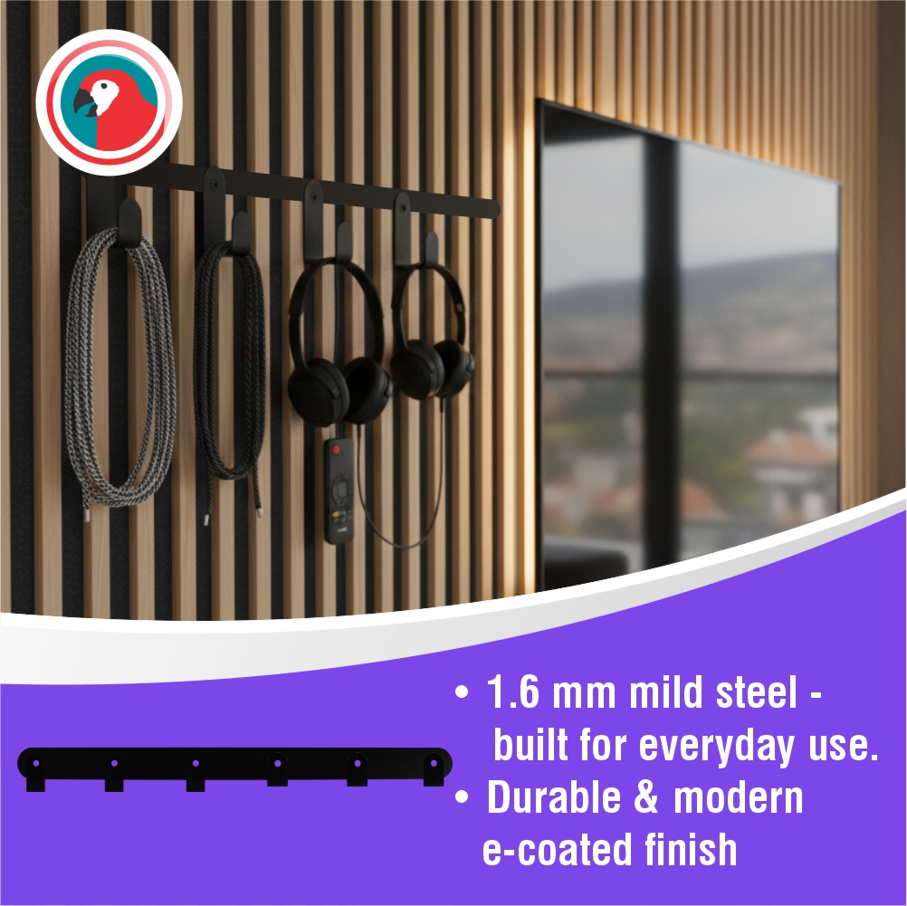 Six formed hooks: Generous capacity for coats, bags, towels, and accessories.