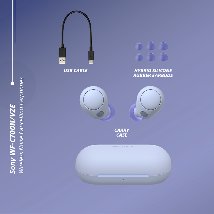 Experience superior sound quality and noise-canceling technology with the Sony WF-C700N True Wireless Earbuds. With a comfortable and secure fit, these earbuds provide up to 9 hours of battery life and come with a compact charging case for on-the-go convenience.Connect to your device effortlessly with Bluetooth and enjoy hands-free calling with built-in voice assistant support. Whether you’re listening to music or taking calls, these earbuds deliver an immersive and personalized audio experience. Shop now and upgrade your listening game with the Sony WF-C700N True Wireless Earbuds.Cancel out background noise with Noise Sensor Technology or use the Ambient Sound Mode to stay connected to your natural surroundings. Adjust ambient sound with the Sony | Headphones Connect app to control your listening experience.Pairing:1. Search for (Sony Headphones connect) on Google Play or App store2. Launch the app.3. Select your country/region of residence4. Confirm the (End user license agreement) and check the (I read the above comments and agree) box.5. Tap [Start]Setting up your Sony Headphones:Launch the “Sony | Headphones Connect” app on your smartphone/iPhone, then register your Sony headphones by following the on-screen instructions. If your headphones are wireless headphones, use method A, B or C below to register the headphones.A: Turn on the wireless headphones, then move the headphones close to your smartphone/iPhone. You can select the headphones to pair (register) with via BLUETOOTH connection. If the headphones do not appear on the screen, try the following method B or C.B: When using a smartphone/iPhone not compatible with one-touch connection (NFC), connect and pair (register) with the wireless headphones via BLUETOOTH connection using the setting menu of your smartphone/iPhone. The BLUETOOTH connection method depends on the headphones.C: When using a smartphone compatible with one-touch connection (NFC), connect and pair (register) with the wireless headphones via BLUETOOTH connection by touching the headphones with your smartphone. Refer to the operating instructions of your headphones to check whether they support the NFC functions.What’s in the box1 x Sony WF-C700N True Wireless Earbuds1 x charging cables1 x Reference guide