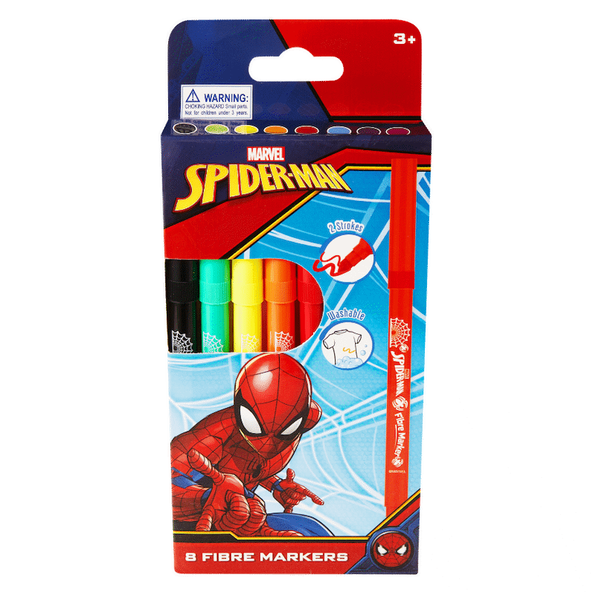 Spiderman 8 Primary Colour Fibre Markers Multi
