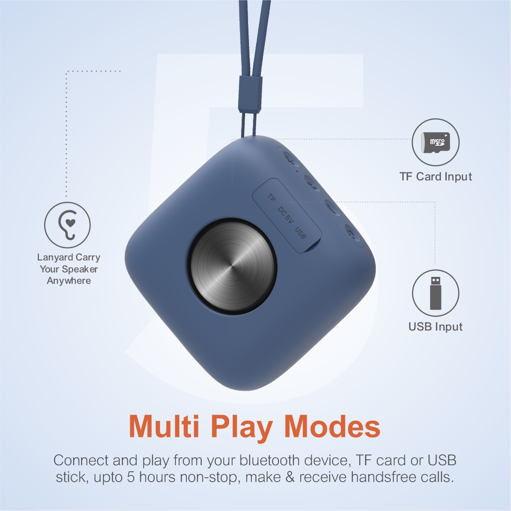 An ultra-portable mini wireless speaker with a smooth ABS outer layer and lanyard ST020 is super easy to carry around fitting right in your palms, and packing a loud punch and impressive bass, keep it on your desktop for work music or carry it with you on your hiking trail this speaker is perfect for any moment of music trill.