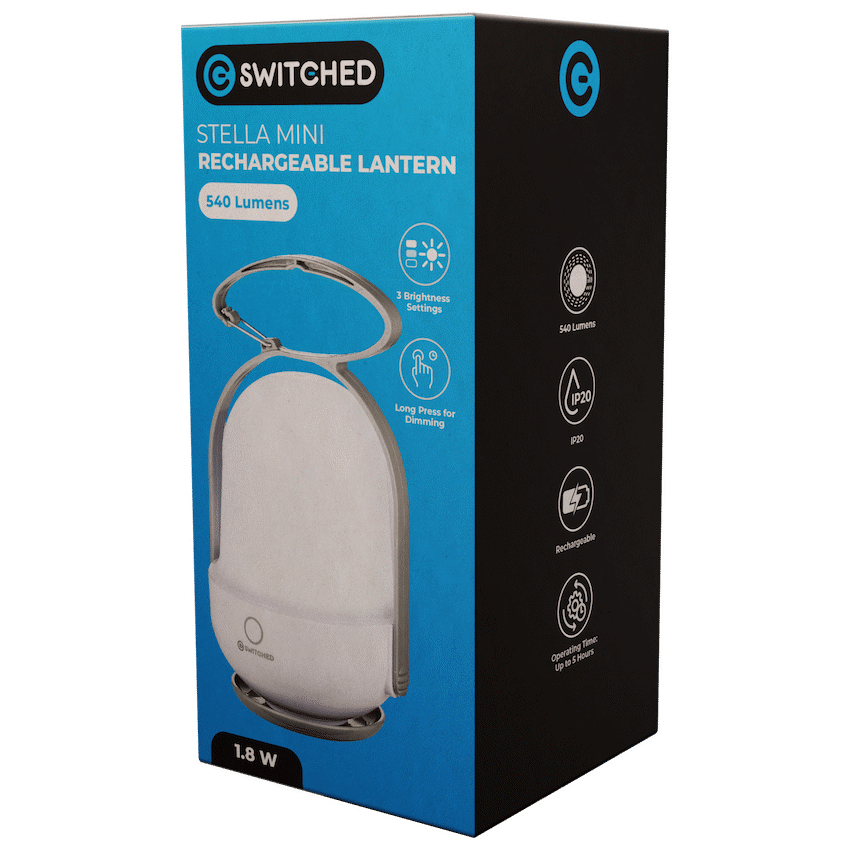 Be prepared for anything with the Switched Stella Mini Rechargeable Camping Lantern – White, a compact yet powerful USB rechargeable lantern built for flexibility, convenience, and performance. Whether you’re heading outdoors or dealing with a blackout, this portable LED lantern provides bright, wide-angle light exactly when you need it.With 3 brightness modes-Low (180lm), Medium (370lm), and High (530lm)-and a soft-touch dimming feature, you can easily adjust the light to suit your space. The built-in dual lithium-ion batteries deliver up to 5 hours of light, while the micro USB charging makes recharging simple and convenient.A handy carry handle lets you hang or transport the lamp with ease, making it ideal as a lantern for load shedding, camping, or emergencies.