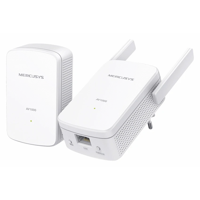 The TP-Link Mercusys MP510 KIT AV1000 Gigabit Powerline Wi-Fi Kit is a powerful and practical solution for extending both wired and wireless internet throughout your home using your existing electrical wiring. Designed for homes with thick walls or multiple floors where traditional Wi-Fi extenders fall short, the MP510 KIT delivers stable Gigabit connectivity without the need for complex cabling or drilling.With AV1000 Powerline technology, the MP510 KIT supports data transmission speeds of up to 1000Mbps, making it ideal for HD streaming, online gaming, and large file transfers. The kit includes two units: one connects to your router and plugs into a power outlet, while the other extends the network to another room – offering both dual-band Wi-Fi and Gigabit Ethernet access.The extender unit provides AC750 dual-band Wi-Fi (300Mbps on 2.4GHz + 433Mbps on 5GHz), allowing seamless wireless connectivity for smartphones, laptops, smart TVs, and more. It also features two Gigabit Ethernet ports, perfect for connecting wired devices like gaming consoles, desktop PCs, or IPTV boxes.