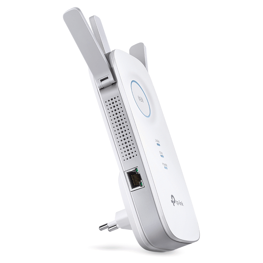 TP-Link RE455 AC1750 Wi-Fi Range ExtenderMaximum Coverage – Extend Wi-Fi coverage by up to 1,115 m2(12,000sq. ft).AC1750 Dual Band Wi-Fi – Simultaneous 450Mbps on 2.4GHz + 1300Mbps on 5GHzThree Antennas – Three adjustable external antennas provide optimal Wi-Fi coverage and reliable connectionsGigabit Ethernet port – Act as a wireless adapter to connect a wired device to your network at Gigabit speedIntelligent Signal Light – Help to find the best location for optimal Wi-Fi coverage by showing the signal strengthAP Mode – Create a new Wi-Fi access point to enhance your wired network with Wi-Fi capabilityTP-Link Tether App – Easily access and manage your network using any iOS or Android mobile deviceUltimate Compatibility – Extend the range of any Wi-Fi router or wireless access point