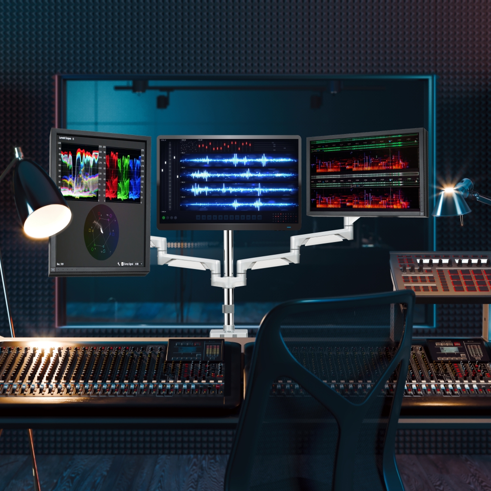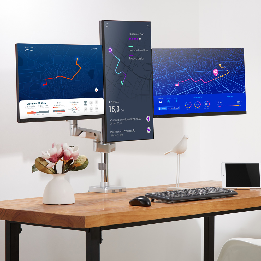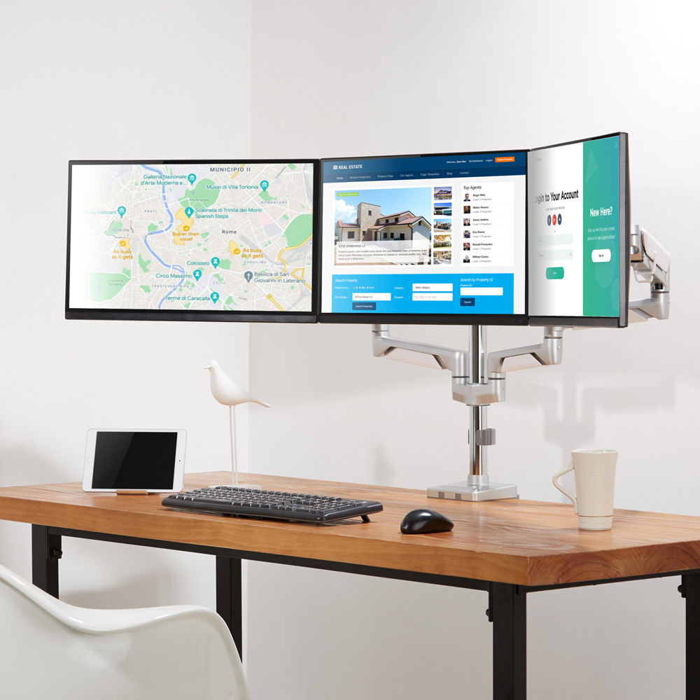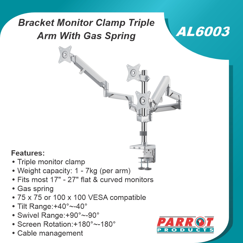 Triple Monitor Clamp Bracket with Gas Spring Arm