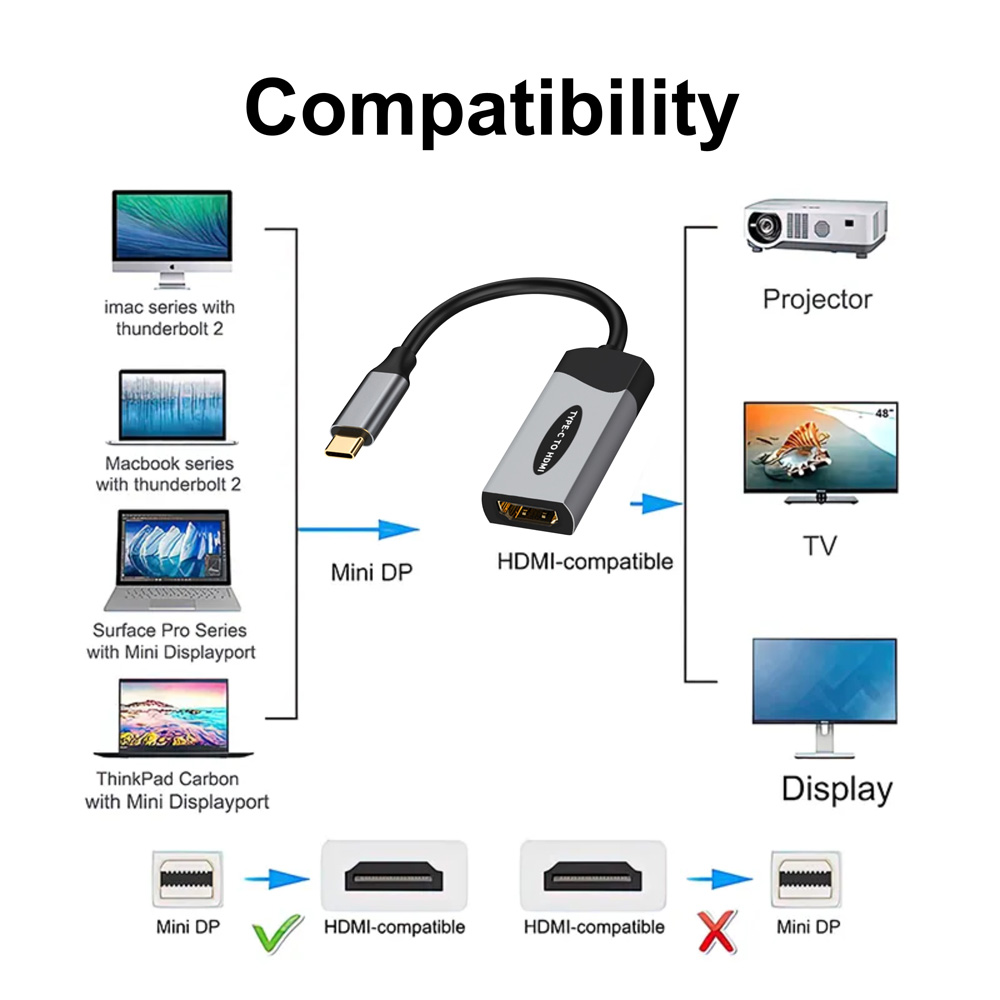 USB C to HDMI Adaptor with Thunderbolt Compatibility.