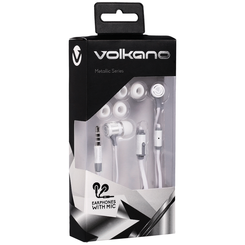 Volkano Earphones with Mic – Metallic Series – White