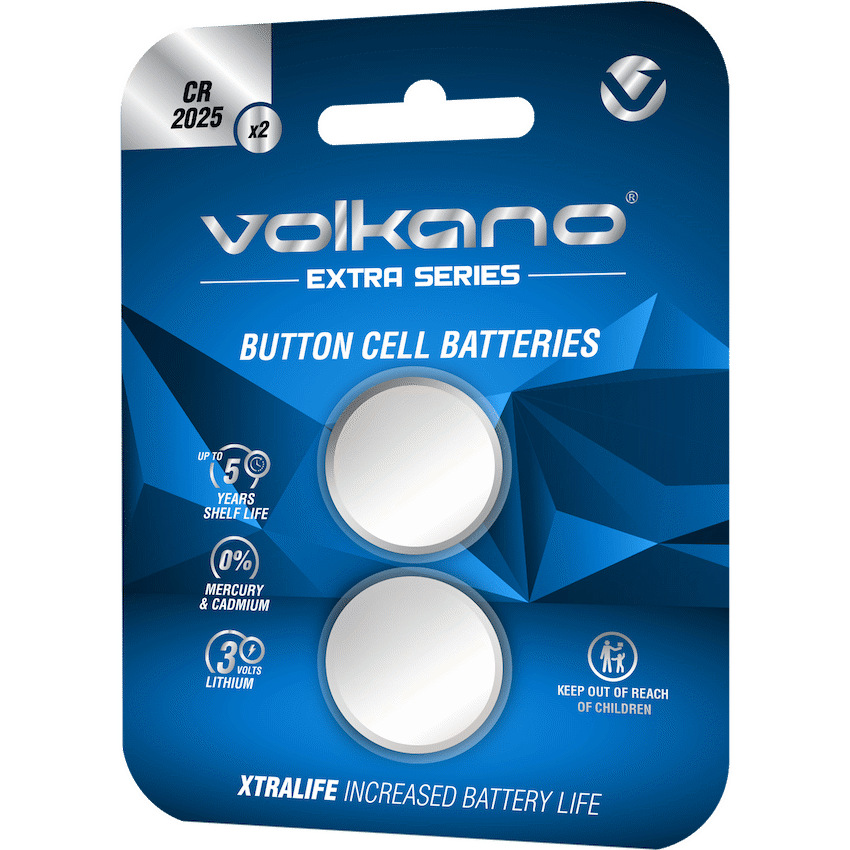 Keep your essential electronics powered with the Volkano Extra Series CR2025 Lithium Batteries. Ideal for everyday devices like remote controls, watches, calculators, fitness bands, and medical equipment, these batteries offer reliable 3V power in a compact, coin-cell format.Made with lithium technology, they provide long-lasting performance and a 5-year shelf life, ensuring you always have power when you need it. The composition is environmentally conscious, with 0% mercury and cadmium, making them safer to use and store.Each pack contains two CR2025 batteries, giving you excellent value and convenience for all your low-drain electronic needs.