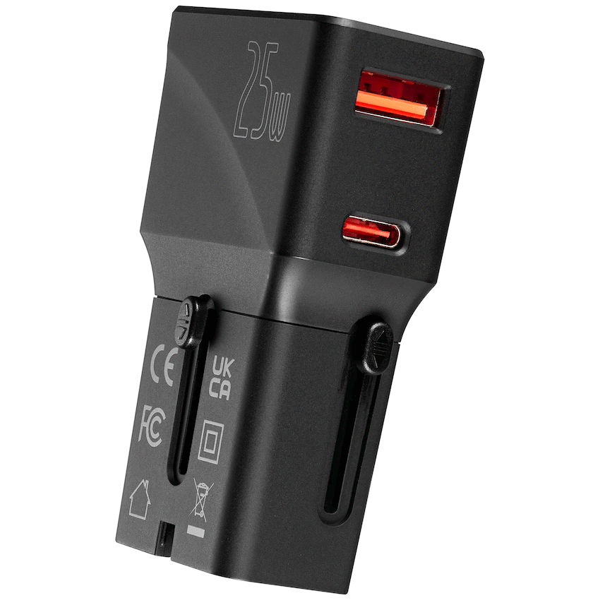 Charge smarter wherever you go with the Volkano Globetrotter Series 25W Dual USB + Type?C Mini Travel Adaptor. Perfect for travellers and daily users alike, this compact adapter supports 25 watts fast charging across USB?C and USB?A ports so you can power up phones, tablets, cameras, or any USB?powered device quickly. Its global compatibility and lightweight design make it ideal for moving between countries without carrying multiple chargers.With voltage support for 100?240V AC, it works in most international power systems. The inclusion of both USB?A and USB?C ensures you can keep both older and newer devices charged. Compact and efficient, it’s the go?to accessory for work, travel, or just keeping your essential gear powered up.