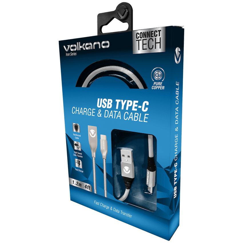 Volkano Iron Series Round Metallic Spring Type-C Cable 1.2m – Silver